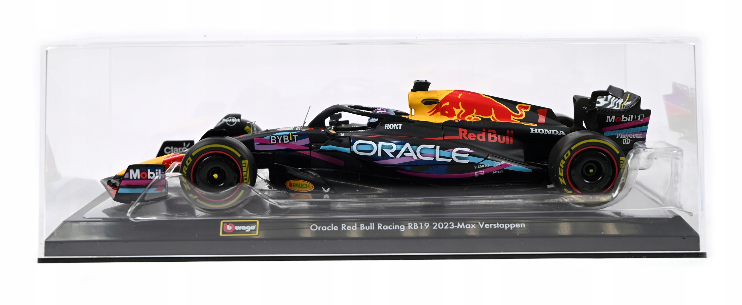 Колекційна металева модель автомобіля + вітрина - Red Bull Racing RB19 RB 19 #1 Макс М. Ферстаппен, переможець Miami GP F1 Formula 1, чемпіон світу з 2023 року в масштабі 1/24, виготовлений відомою, цінною та авторитетною компанією Bburago