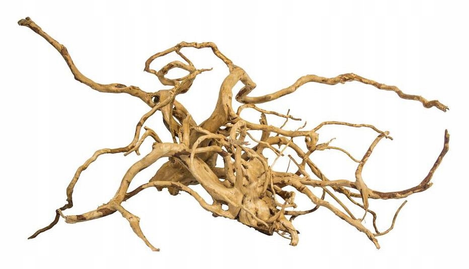 Корені сухі і швидко тонуть в акваріумі Щоб прискорити цей процес, відваріть їх у воді з нейодованою сіллю. Низький вміст дубильних речовин і процес варіння призводять до того, що цей вид коренів швидко перестає знебарвлювати воду. У маленьких нанотанках колір буде більш помітним завдяки об’єму води. Через кілька тижнів перебування в акваріумі колір коренів зміниться, коріння стане темніше, від коричневого до чорного. Гумінові кислоти, що повільно виділяються з коренів, покращують умови життя тварин в акваріумі.