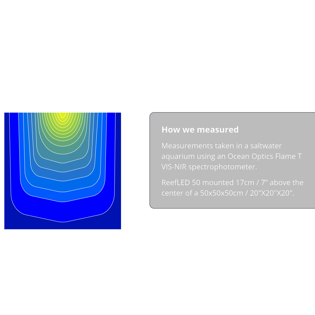 Однією з найбільших переваг набору Red Sea є освітлення Red Sea ReefLED 50 потужністю 50 Вт. Лампа, розміщена на поворотному шарнірі, оснащена можливістю керуванняза допомогою програми для планшета або телефону. Він управляється шляхом встановлення часу ввімкнення та вимкнення лампи, а також дозволяє імітувати світанок і захід сонця та змінювати кольори освітлення в різний час доби.