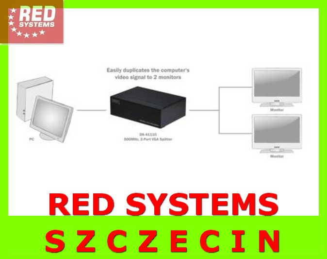 RED Splitter 2 x VGA DSUB Rozdzielacz z zasilaczem