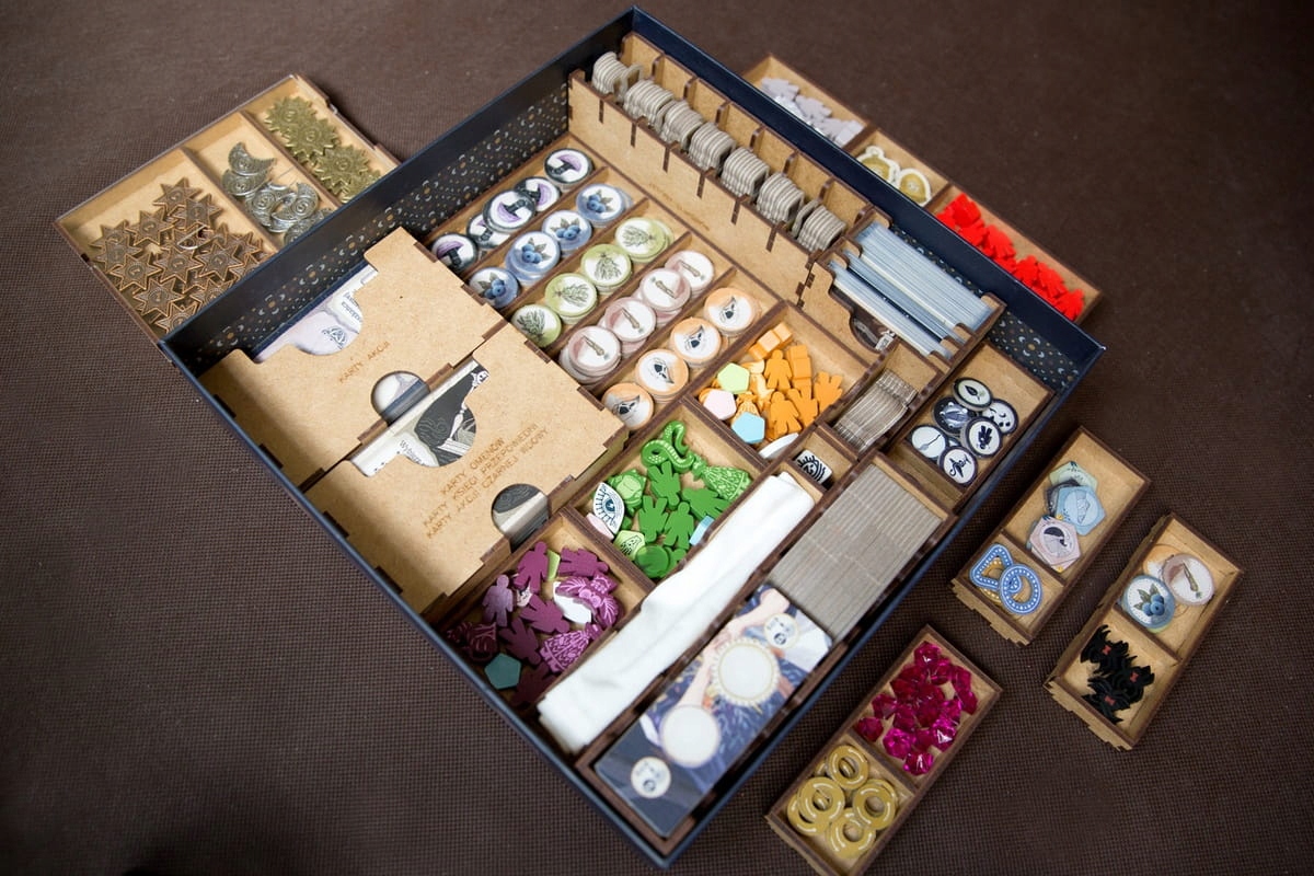 - Контейнери для жетонів і маркерів допомагають підтримувати порядок на столі