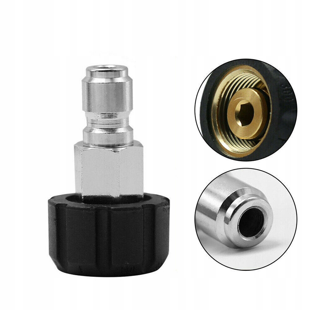 Набір швидкого з’єднувача з’єднує вихід насоса зі шлангом мийки високого тиску або шланг мийки високого тиску з пістолетом-розпилювачем, перетворює гвинтову муфту M22 на швидкий з’єднувач 3/8".