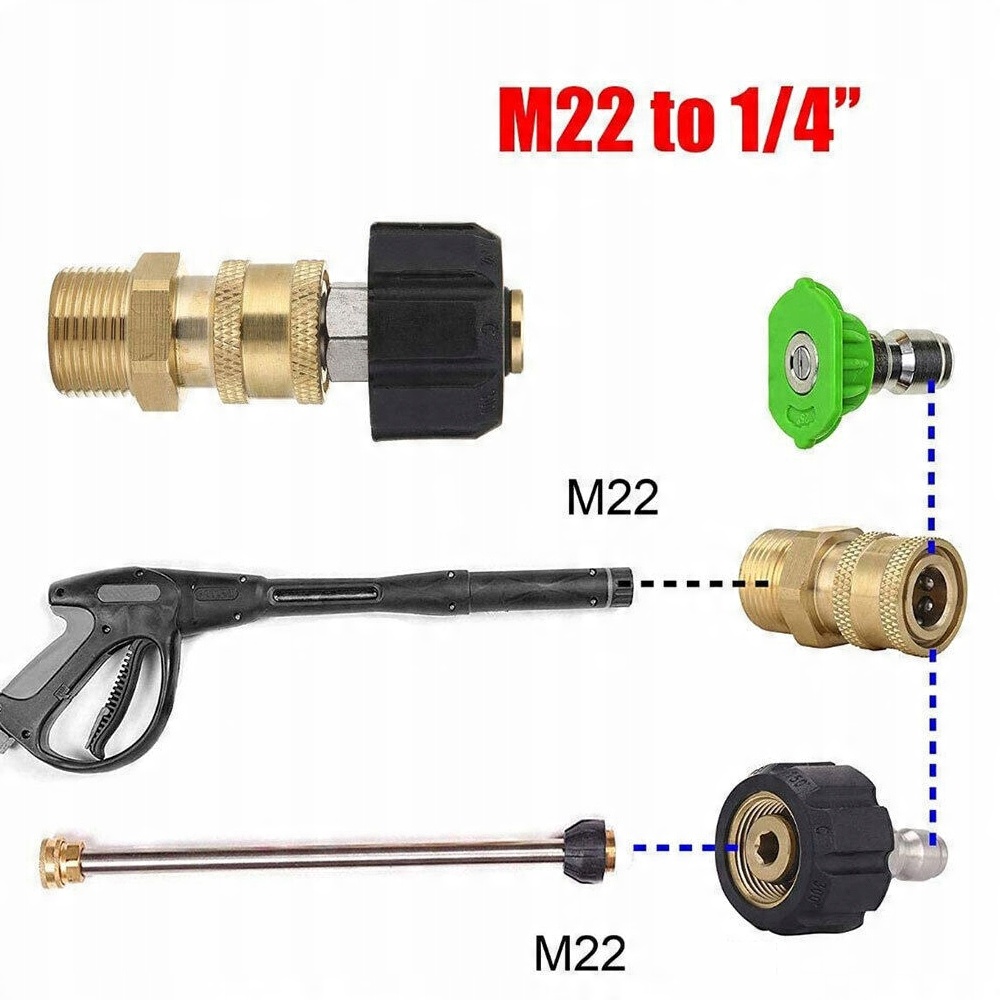 - ✅- Перетворює різьбові з’єднання M22 на швидкі з’єднувачі 3/8" для легкого з’єднання та від’єднання.