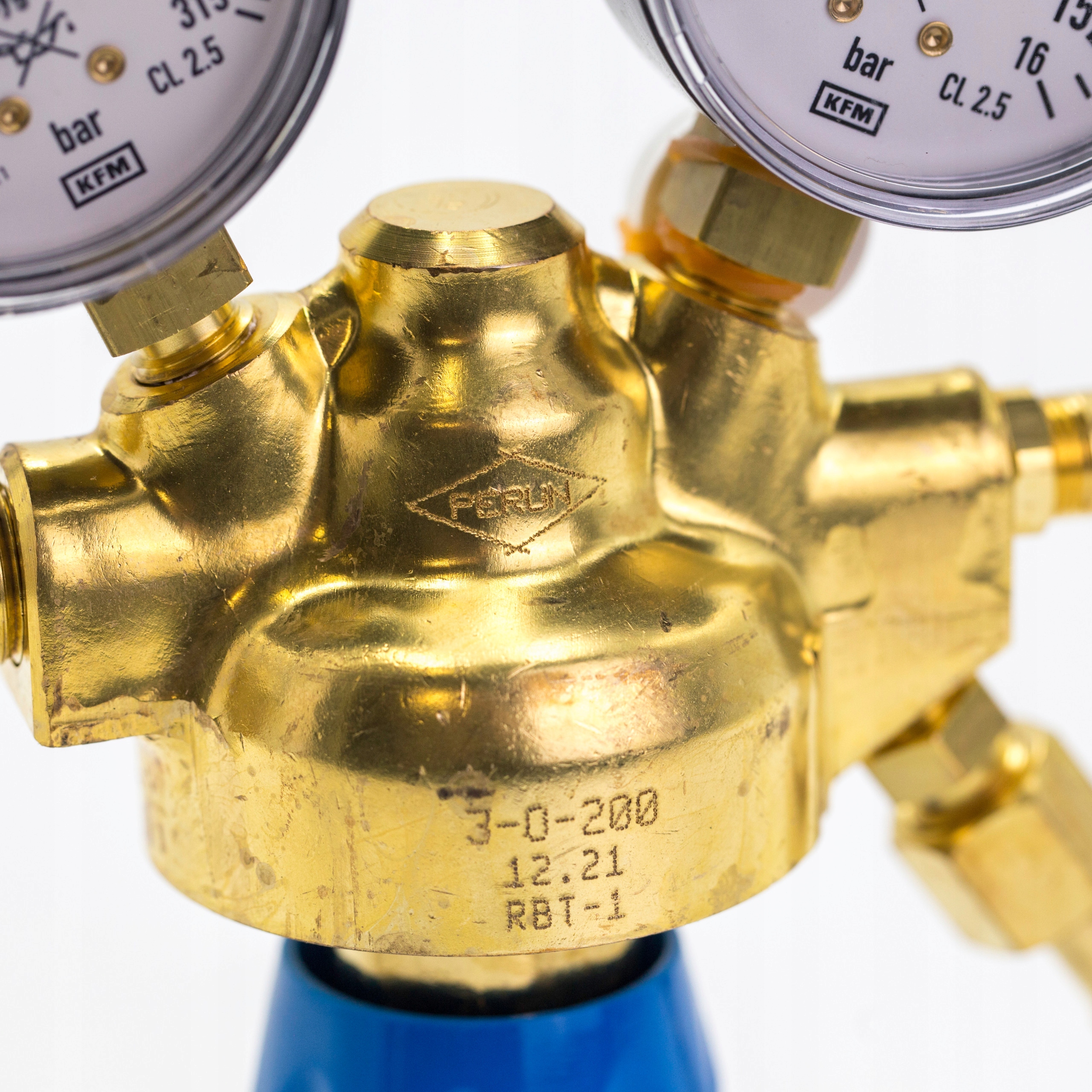Безважільний редуктор зі змінним регулюванням вихідного тиску. Цей редуктор дозволяє знизити тиск газів, що відбираються з балона, до необхідного вихідного (робочого) тиску і забезпечує автоматичну підтримку цього тиску на можливо постійному рівні, незалежно від зміни тиску на вході. Максимальний тиск на вході та виході редуктора позначені на манометрах червоною лінією.