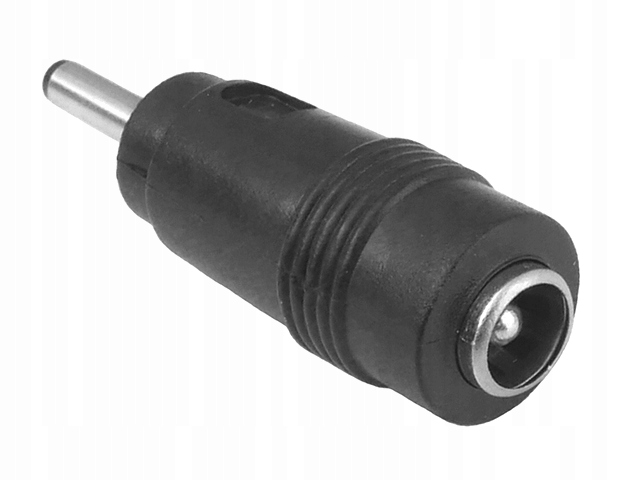 Найпопулярніші блоки живлення постійного струму, які використовуються в радіотелебаченнях і комп’ютерній техніці, оснащені найпопулярнішою трубчастою вилкою постійного струму з розмірами 2,1 мм (внутрішній діаметр) на 5,5 мм (зовнішній діаметр). Пропонований перехідник дозволяє змінити розмір цієї заглушки на заглушку розміром від 1,0 мм (внутрішній діаметр) до 3,0 мм (зовнішній діаметр). Адаптер має штекер 1,0/3,0 мм з одного боку та роз’єм постійного струму 2,1/5,5 мм з іншого: