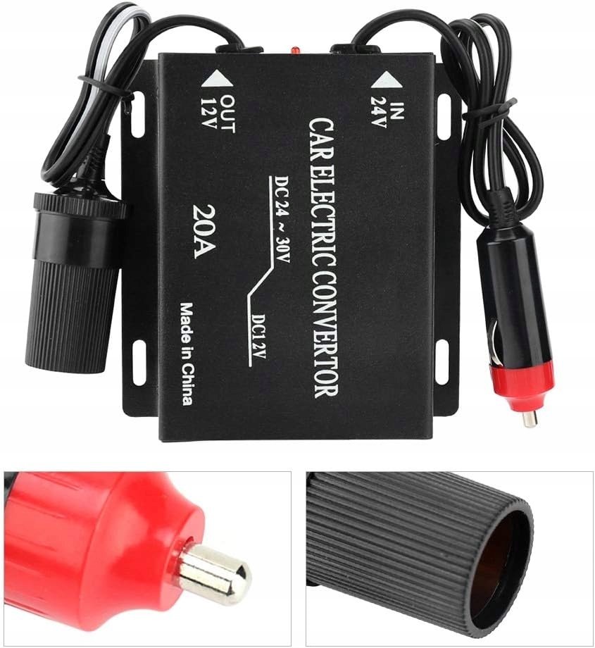 Автомобільний перетворювач живлення 20A, понижуючий трансформатор 24В на 12В типу прикурювача