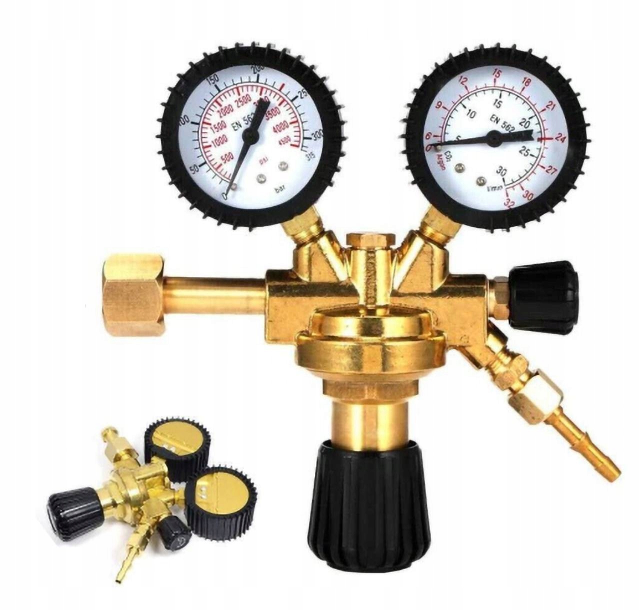 ⏺Ціферблатні індикатори захищені з усіх боків гумовими захисними ковпачками. Манометри — це прецизійні прилади за стандартом DIN із двома манометрами: один для тиску в балоні, а інший — для тиску на виході.