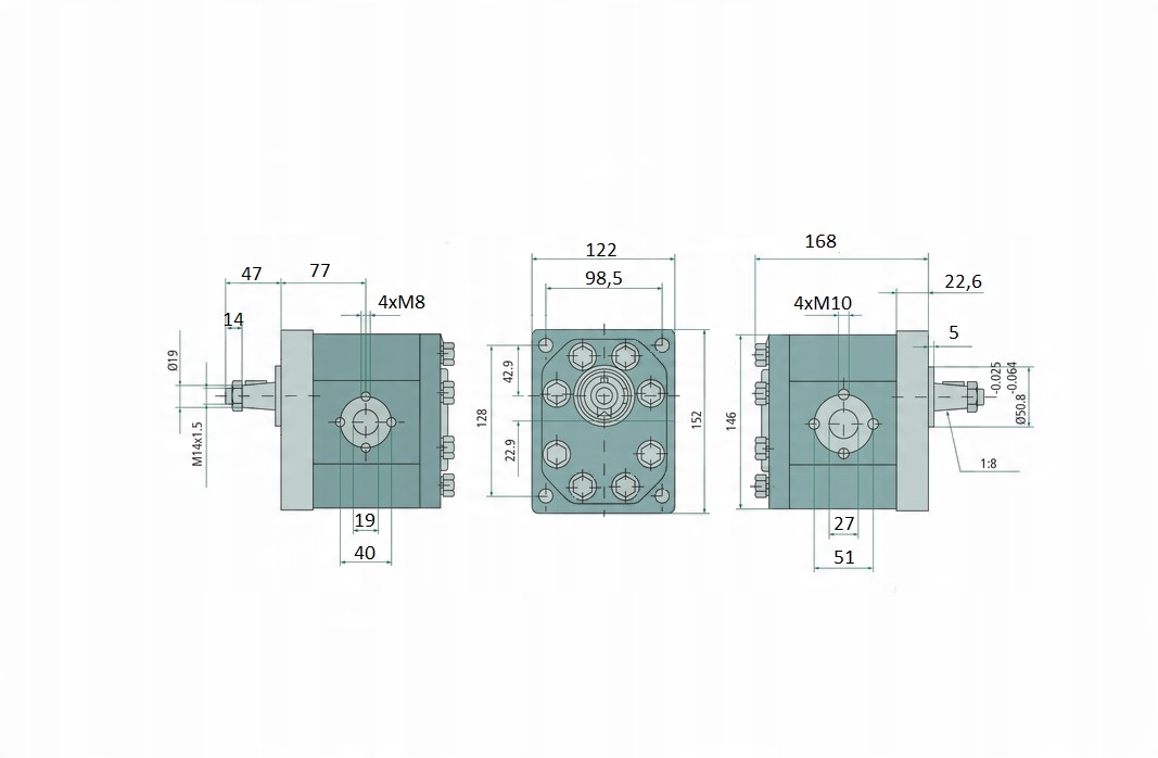 - Напрямок обертання: праворуч. Конус 1:8, М14 х 1,5 - для одного клина