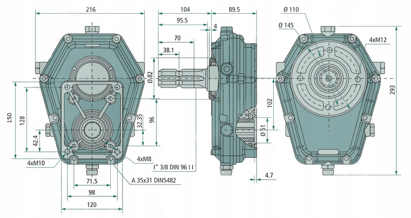 - Вихідний вал: 1 3/8" DIN9611