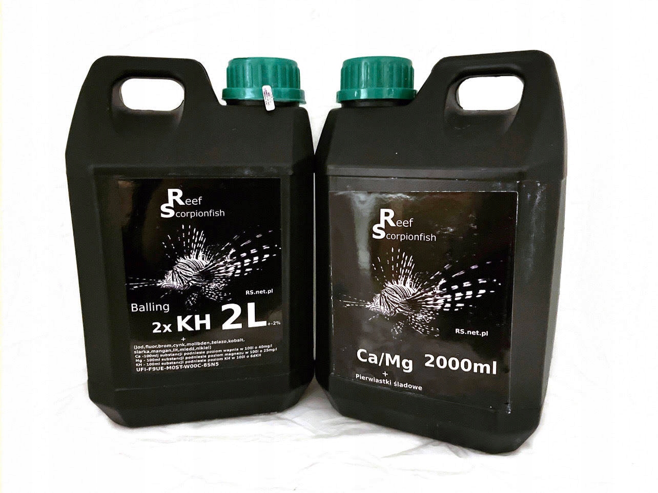RS Balling 2L двічі концентрований Reef Scorpionfish - це речовина для доповнення споживання бікарбонату кальцію (Kh), магнію, кальцію, марганцю, літію, калію, міді, стронцію, нікель, бор, хром, йод, фтор, бром, цинк, молібден, залізо, кобальт і сірка.