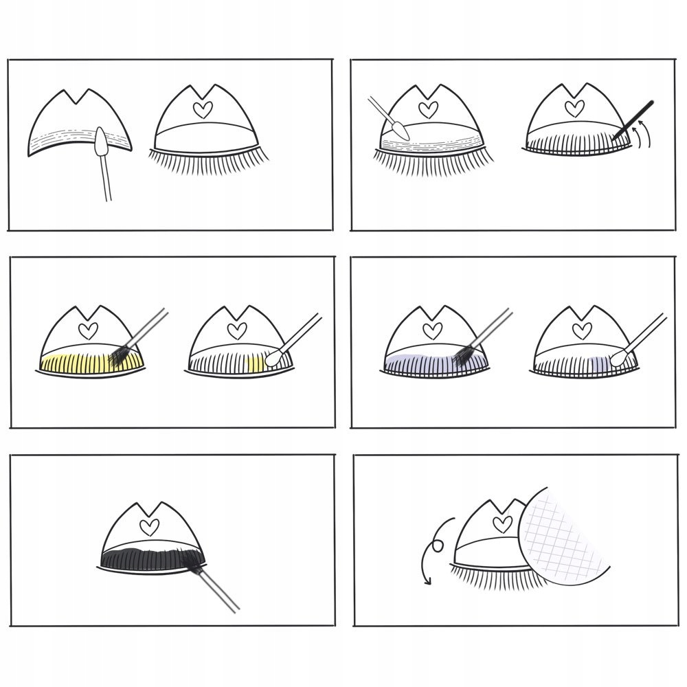 7. Фарбування вій - Тепер ви можете фарбувати вії за допомогою фарби RefectoCil безпосередньо на Lifting Pads. Час дії всього 2 хвилини! Потім вологою ватною паличкою видаліть фарбу. Щоб уникнути плям на подушечках: максимальний час нанесення 2 хв. Потім ретельно промийте.