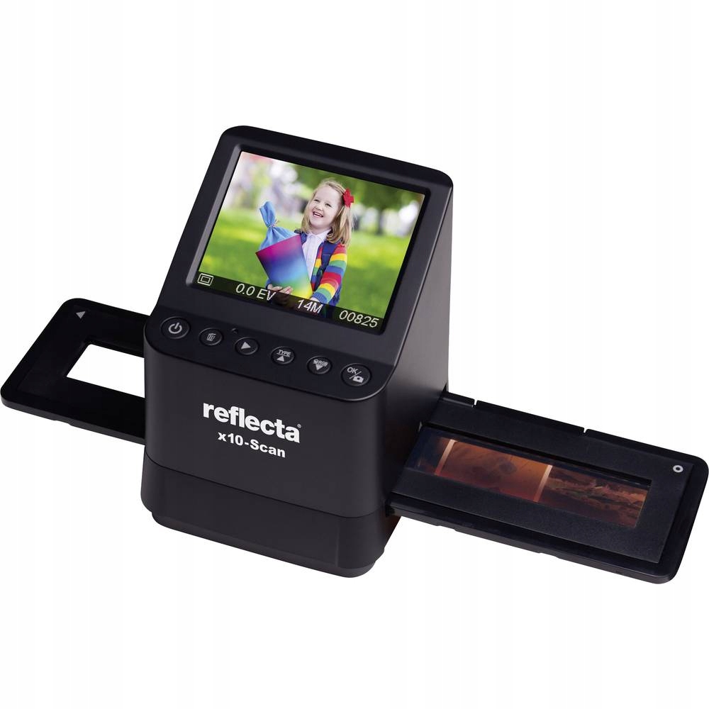 Сканер Reflecta x10 є ідеальним рішенням для всіх ентузіастів фотографії, які хочуть швидко та легко архівувати свої класичні негативи та слайди. Завдяки використанню 14-мегапіксельного CMOS-сенсора сканування займає всього кілька секунд, а отримані фотографії виходять найвищої якості. Крім того, пристрій має 3,5-дюймовий (8,9 см) РК-монітор, який дозволяє легко вибирати та переглядати скановані зображення.