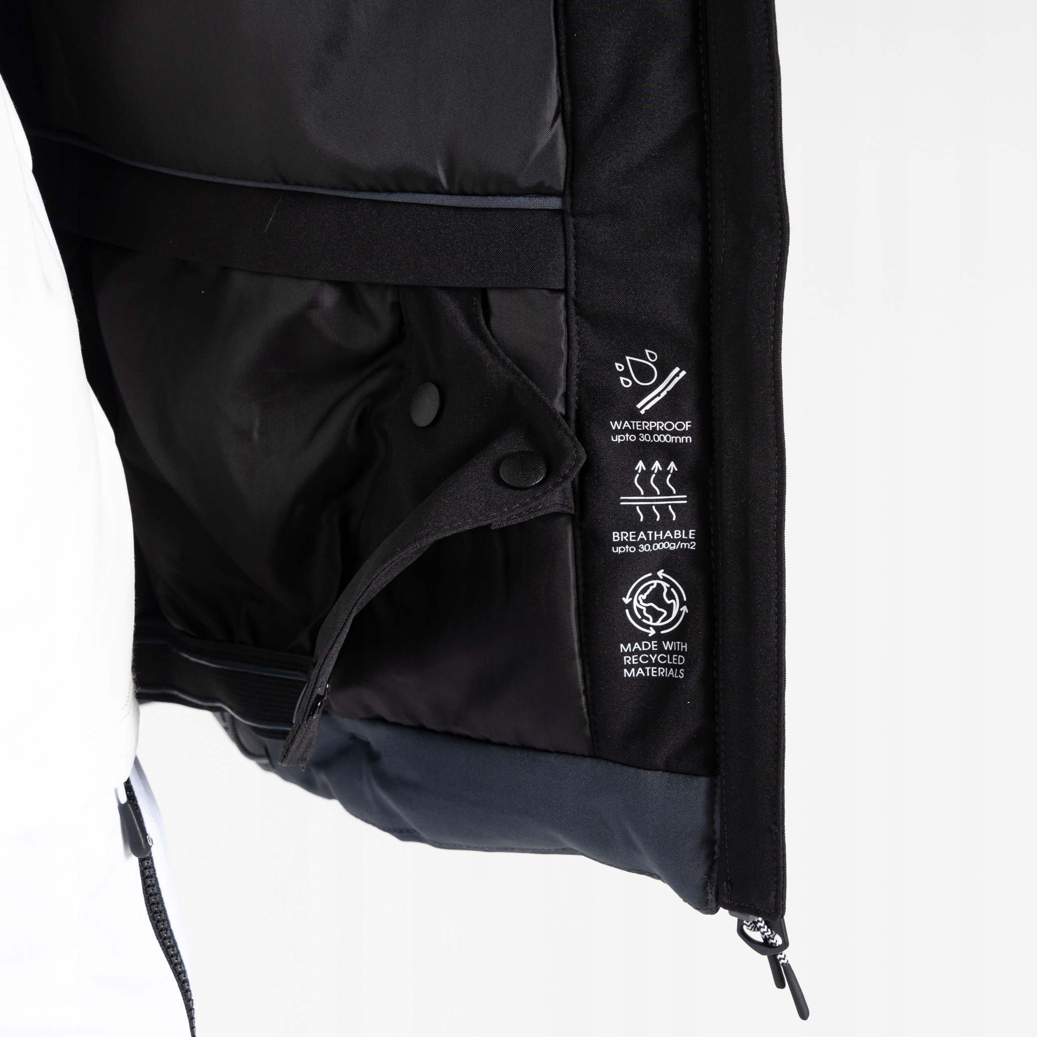 оснащений не знімним сніговим поясом , з внутрішньої сторони нижнього краю, закінченого гумою з гумовими елементами, що запобігають руху пояса, що запобігає смузі. Куртки з внутрішньої сторони оснащені тунелем з еластичною із пробками для регулювання ширини .