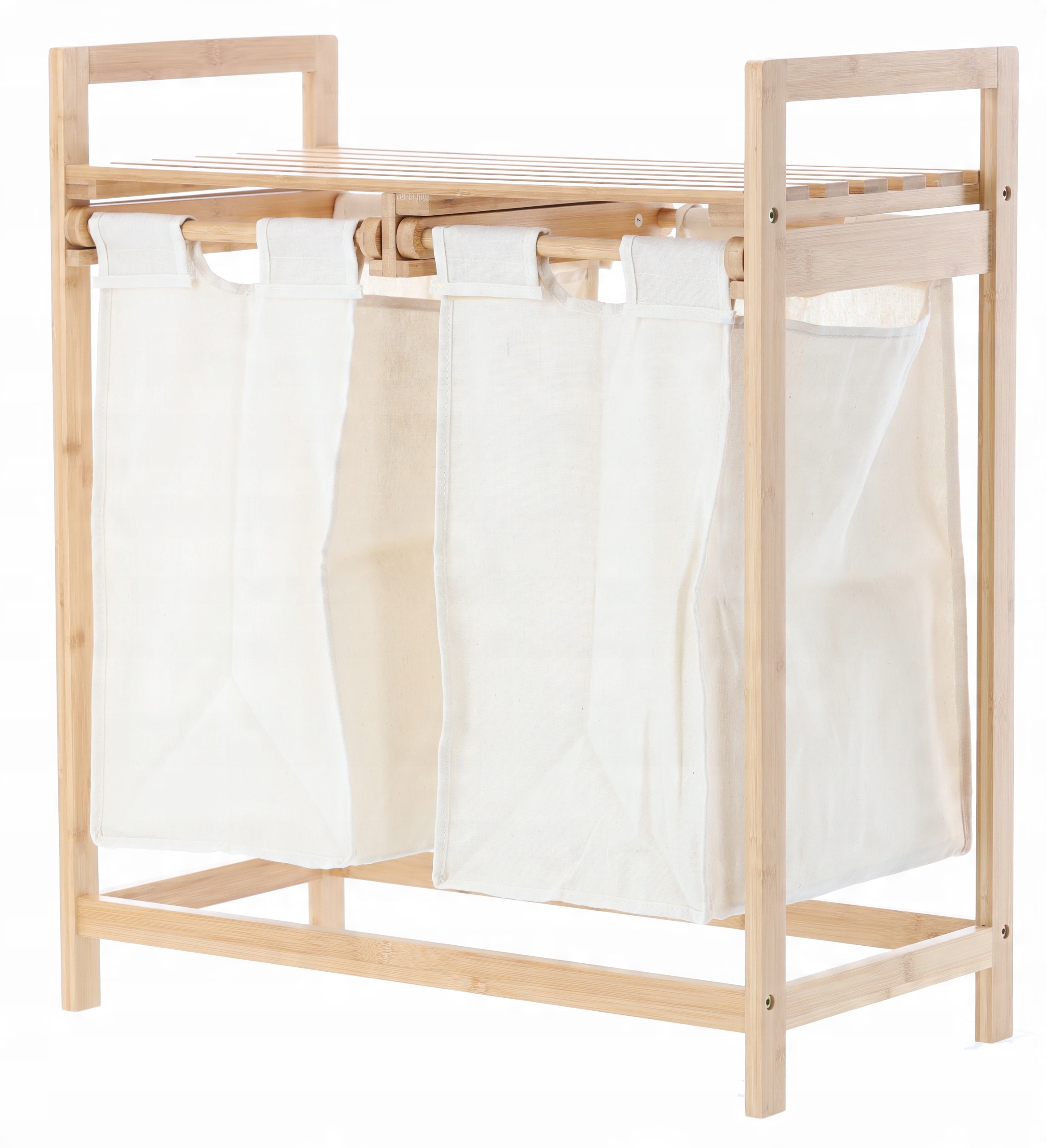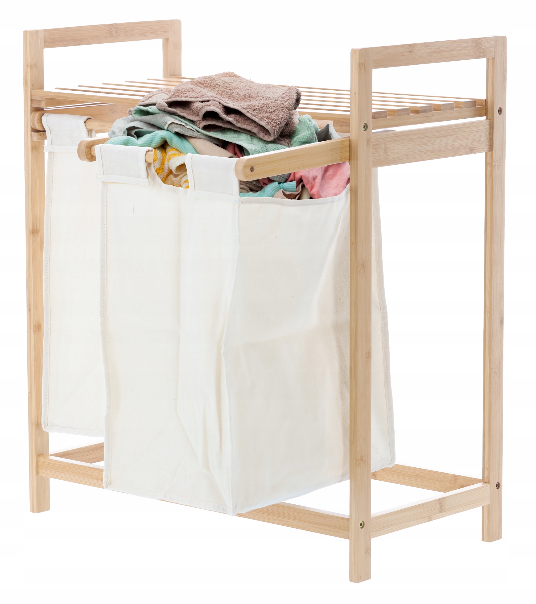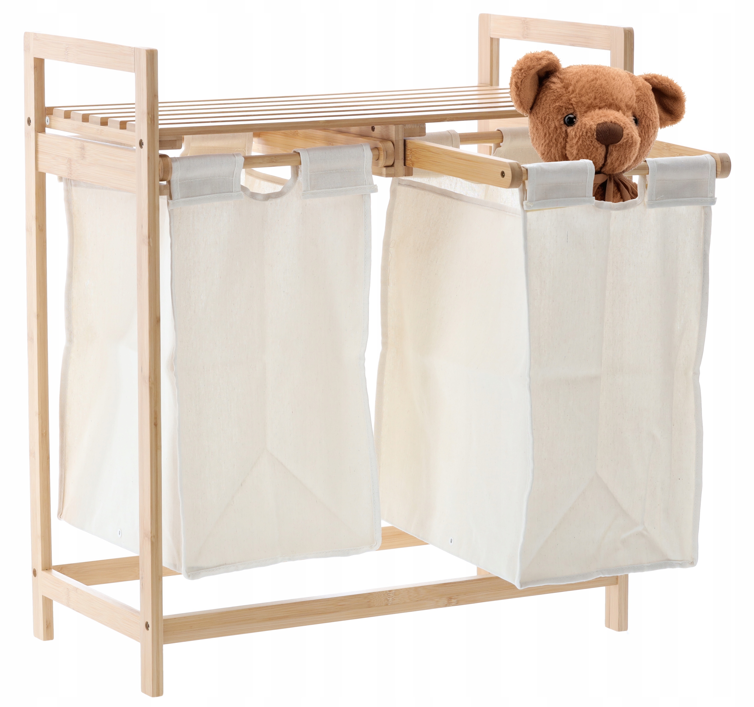 REGAŁ BAMBUSOWY Z DWOMA KOSZAMI 64x33x73 CM KOSZ NA PRANIE ZABAWKI