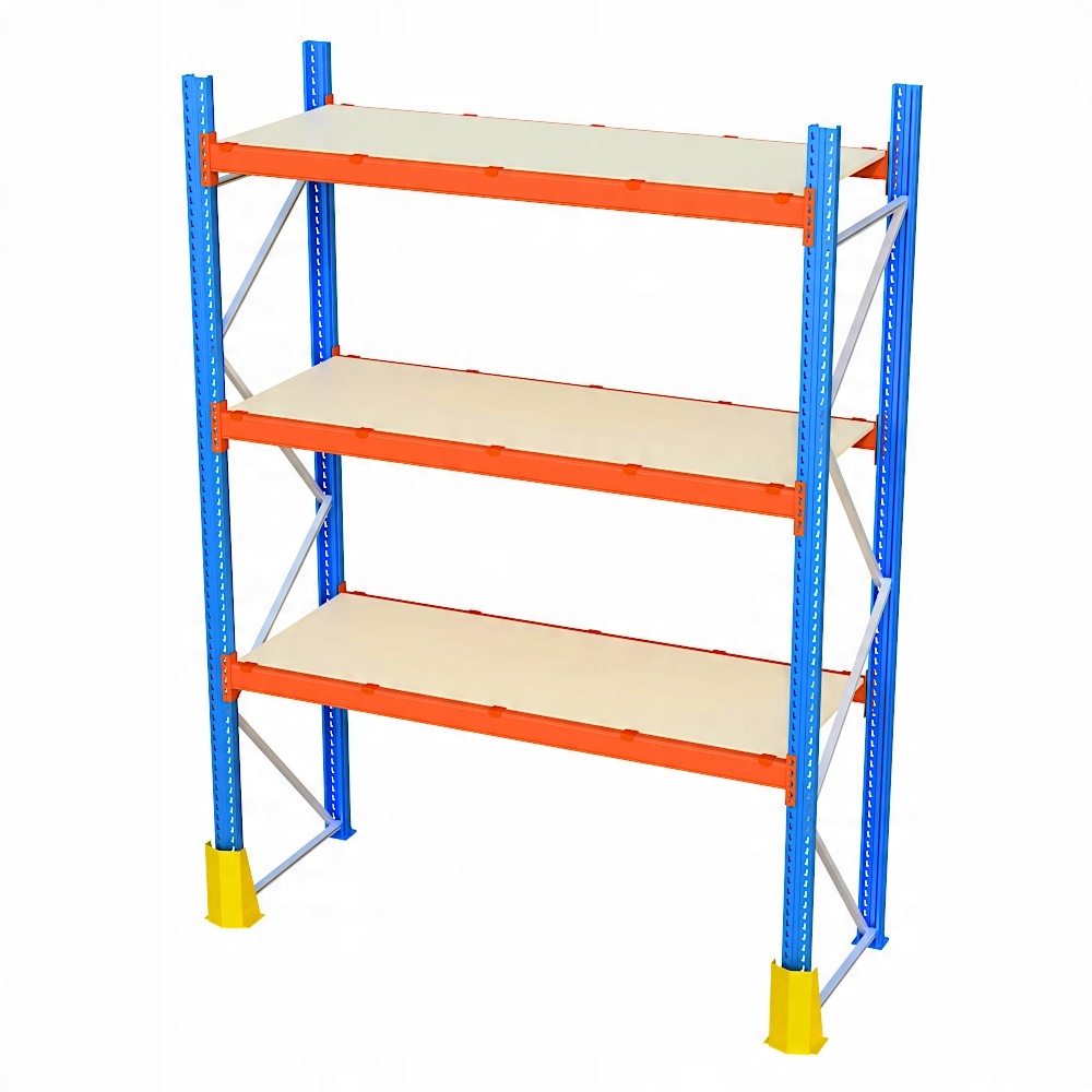Полиця складається з 1секції з робочою довжиною 270 см кожна . Стелаж має 4 рівня (включаючи підлогу), що дає загалом місце для 12 піддонів. Висота рівнів регулюється вільно. Модульна конструкція - ви можете додати потрібну кількість рівнів і цілих секцій, створюючи довгий ряд полиць.
