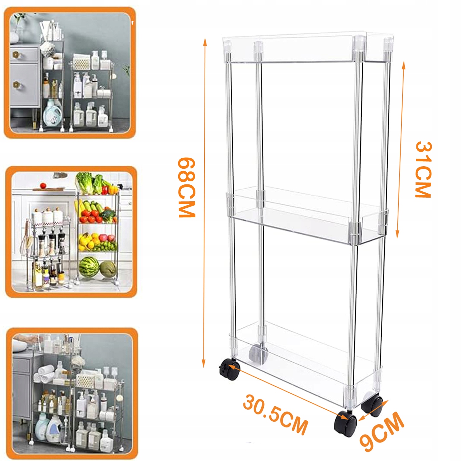 REGAŁ PÓŁKA KUCHENNA ŁAZIENKOWA SZAFKA DO WĄSKICH ZAKAMARKÓW Z KÓŁKAMI 9CM