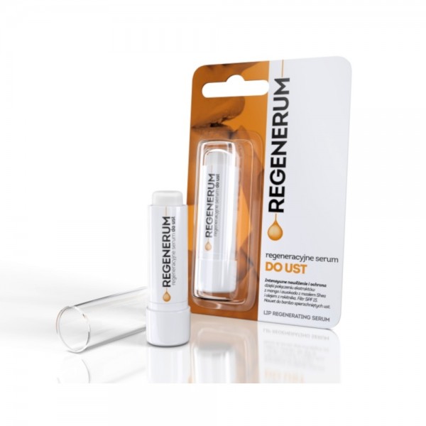 Відновлююча сироватка для губ Regenerum живить і доглядає за ніжною шкірою губ, глибоко зволожує її та захищає це проти втрати вологи. Завдяки інгредієнтам, які відновлюють ліпідний шар епідермісу, сироватка ефективно регенерує навіть дуже суху, подразнену та потріскану шкіру губ, приносячи полегшення та заспокоєння.