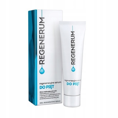 Регенеруюча сироватка для п'ят Regenerum інтенсивно живить і відновлює суху, пошкоджену та потовщену шкіру п'ят. Завдяки високому вмісту активних компонентів захищає її від розтріскування, відновлює м'якість, гладкість і еластичність.