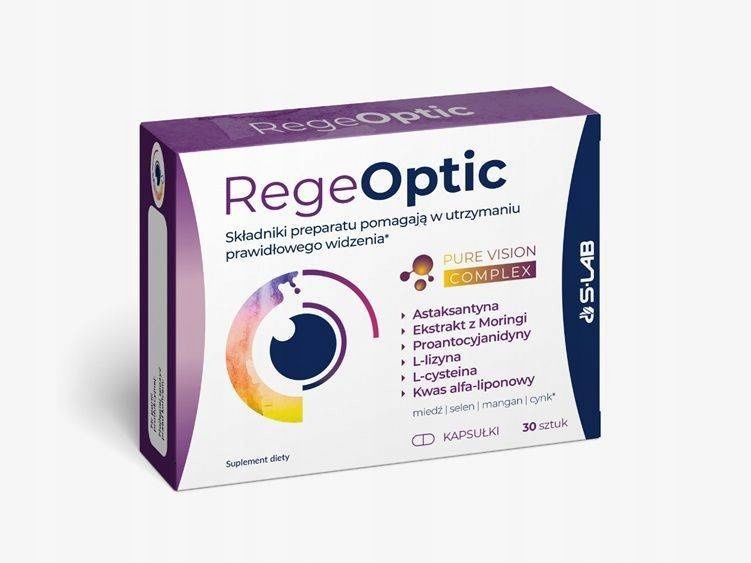 Regeoptic є унікальним поєднанням поживних речовин, які підтримують підтримку належного зору та захищають клітини від окисного стресу*. Складається з комплексу рослинних екстрактів (астаксантин, екстракт листя морінга, екстракт насіння винограду), ненасичених жирних кислот (альфа-ліпонова кислота) та амінокислоти (L-лізин, L-цистеїн) були для нейтралізації шкідливого впливу вільних радикалів, що впливають на зору погіршення.