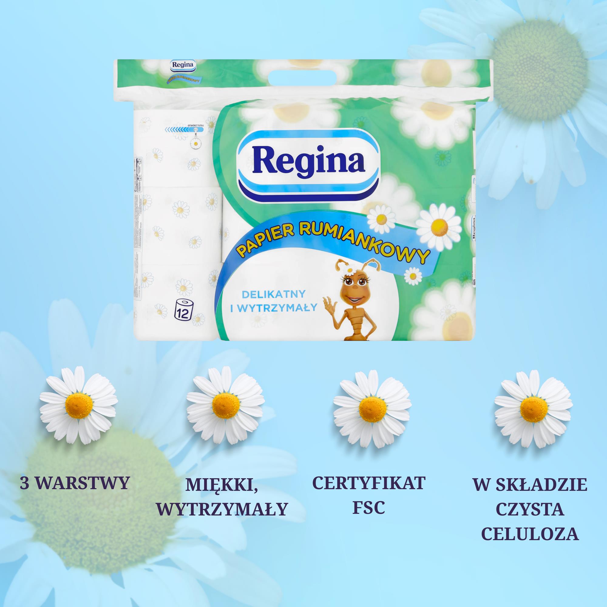 Regina -це бренд, відомий високоякісними паперовими продуктами, які піклуються про комфорт та гігієну у вашому домі. Пропозиція включає не тільки туалетні папери, але й паперові рушники, хустки та інші повсякденні предмети. Перевірте повний асортимент продуктів Regina та виберіть найкраще для себе та своєї родини!