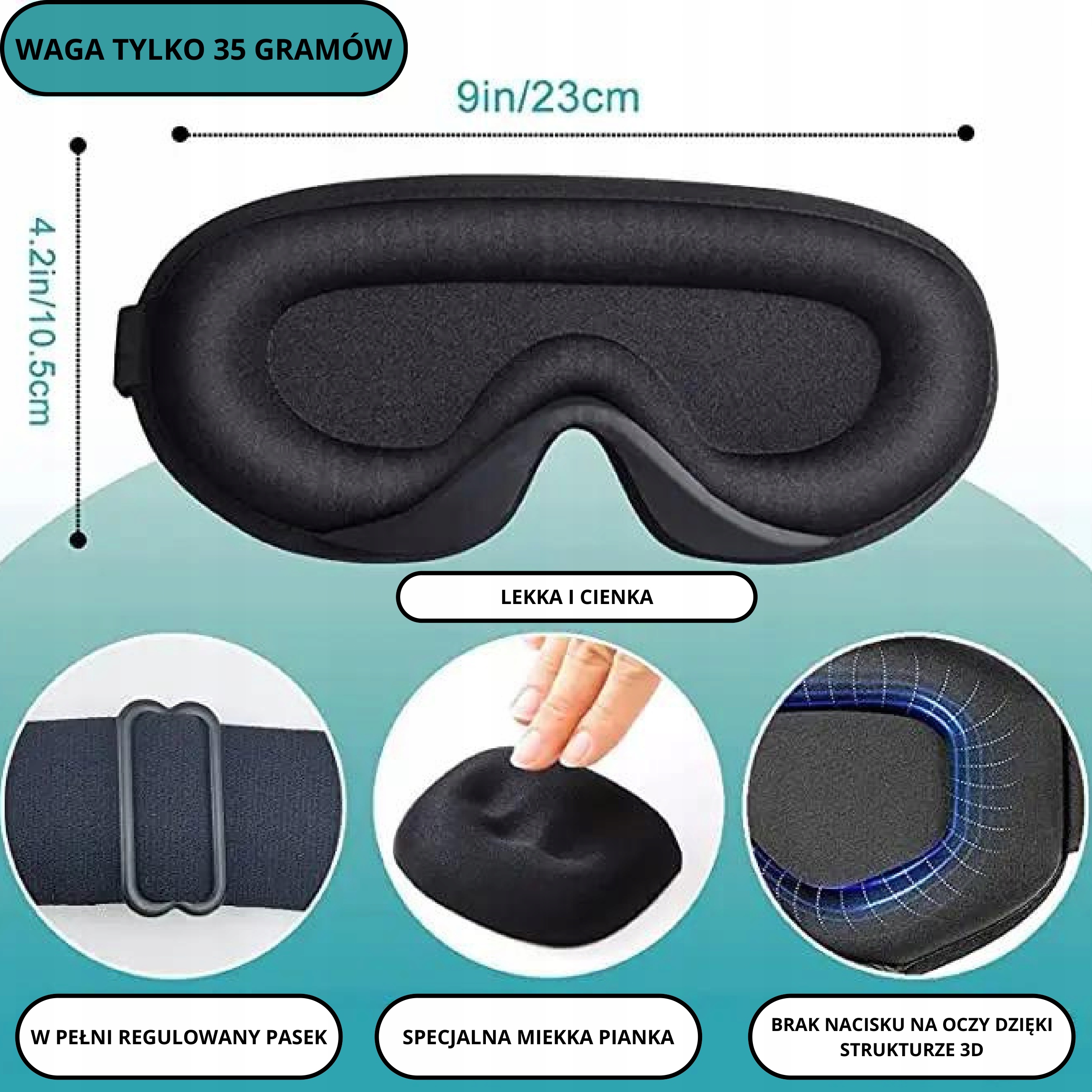 ✅ Спеціальний 3D-дизайн, забезпечує ідеальне прилягання до обличчя та блокує до 99% світла,