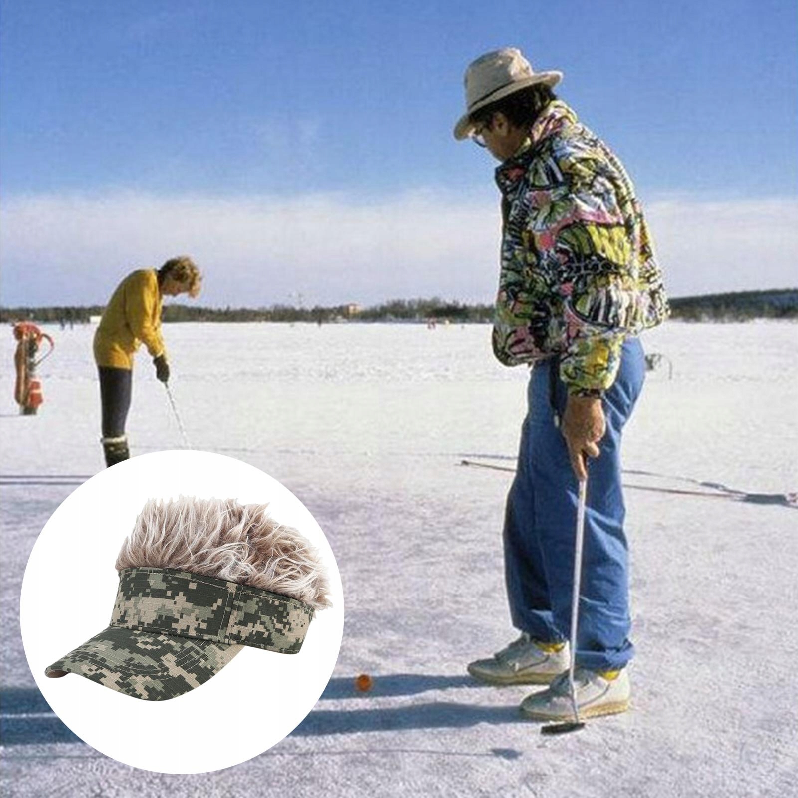 Регульована бейсбольна кепка з кумедним капелюхом для гольфу кольору хакі + кавова перука