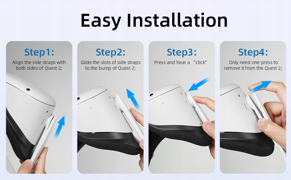 【Найвищі бічні смуги】 Oculus/мета -ремінь виготовлений з вдосконаленого полімерного матеріалу, який є екологічним і має надзвичайну міцність і стабільність, 15 000 тестів на вигин забезпечують міцність і тривалий термін, що турбує, що бічний пояс, поліпшення досвіду при носінні, і, таким чином, робить процес VR приємнішим.