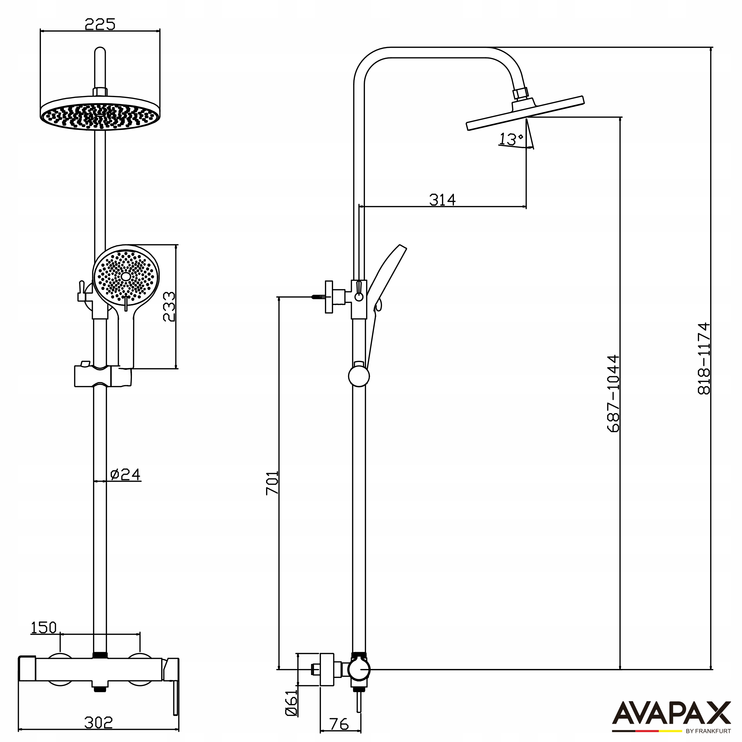 Душова колонка з хромованим краном, регульована під кабіну, комплект ECO AVAPAX