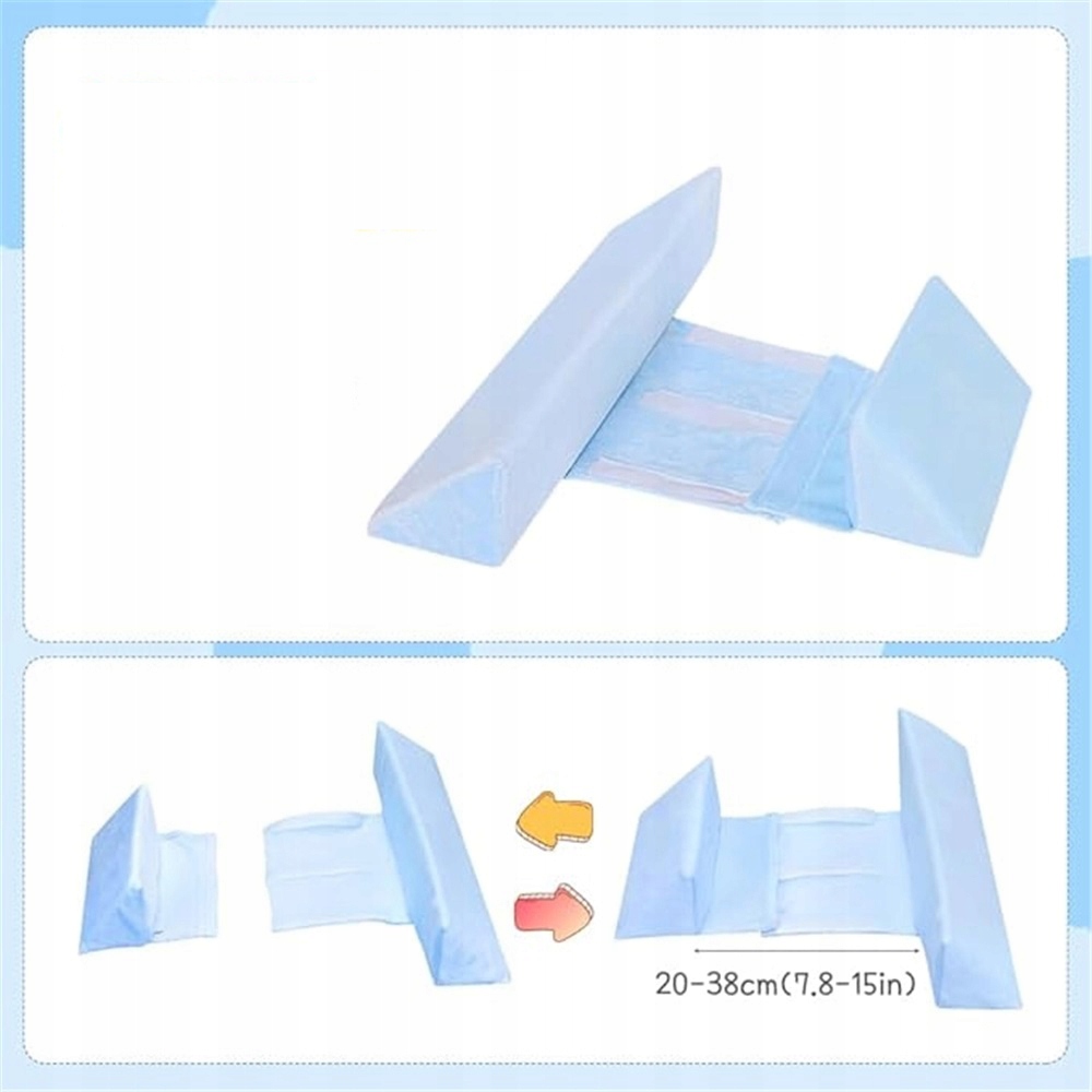 Ці розміри забезпечують стабільну підтримку спини або шлунку дитини та запобігають неконтрольованому обертанні під час сну. Менша клинова накладка висотою 22 см і забезпечує зручну підтримку для іншої сторони тіла. Ширина подушки може бути змінена в діапазоні від 10 см до 22 см, а це означає, що розташування двох клинів може бути пристосоване до розміру дитини. Ця гнучкість забезпечує оптимальне положення для сну збоку, обережно тримаючи дитину в ідеальному положенні.
