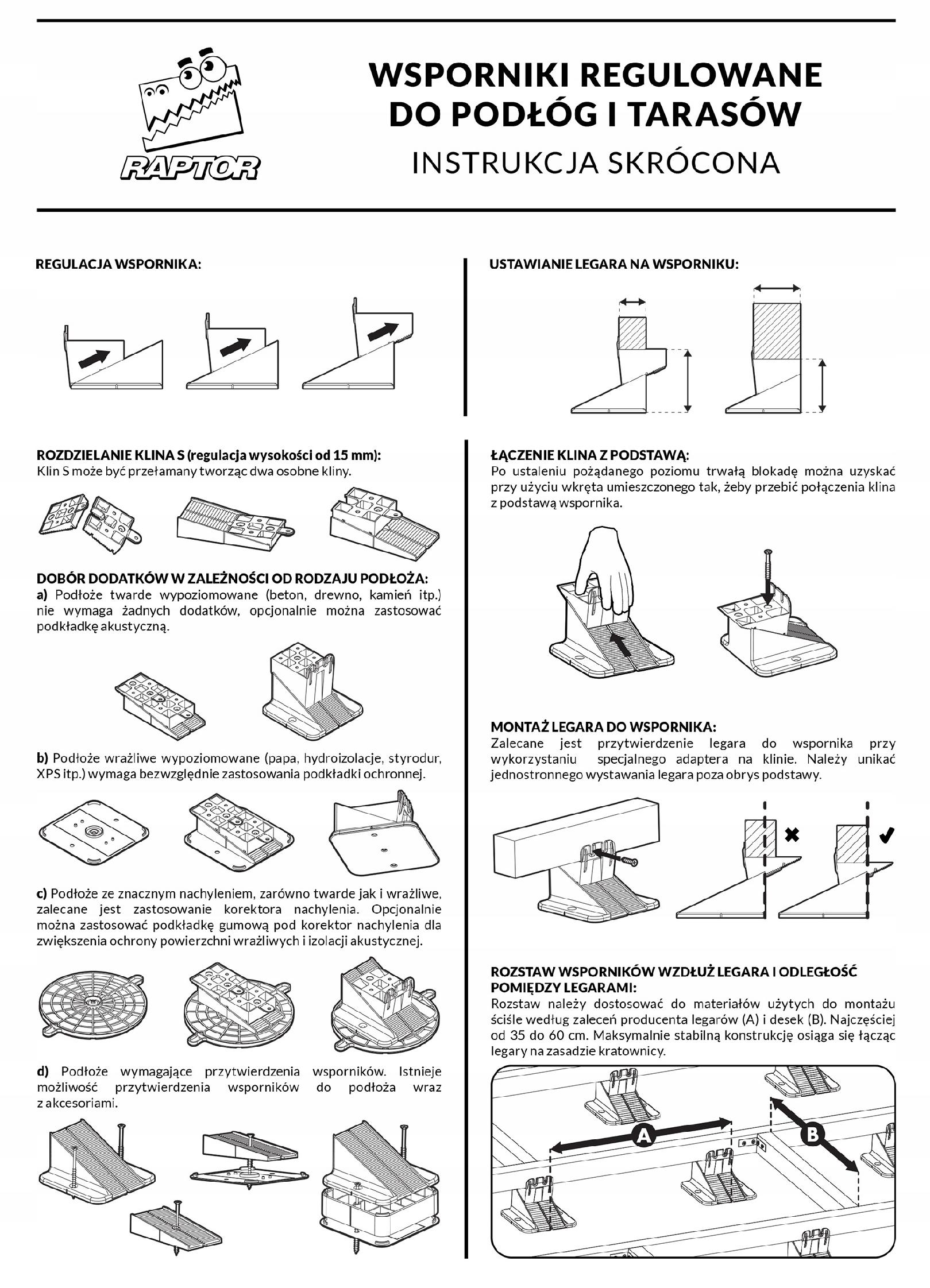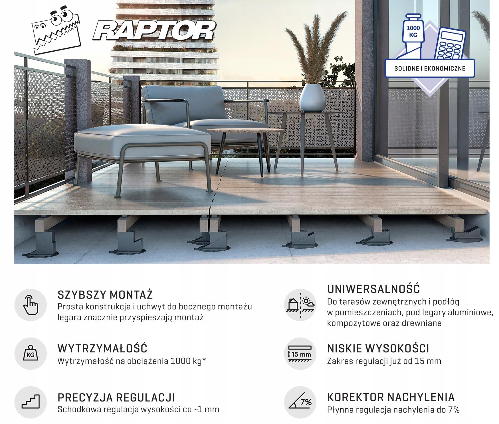 Консолі RAPTOR - це рішення, призначене спеціально для вирівнювання балок під терасами та під дерев’яними підлогами на балках. Завдяки цій спеціалізації ми пропонуємо високоякісне системне рішення за привабливою ціною порівняно з іншими системними рішеннями з ширшим діапазоном застосування.