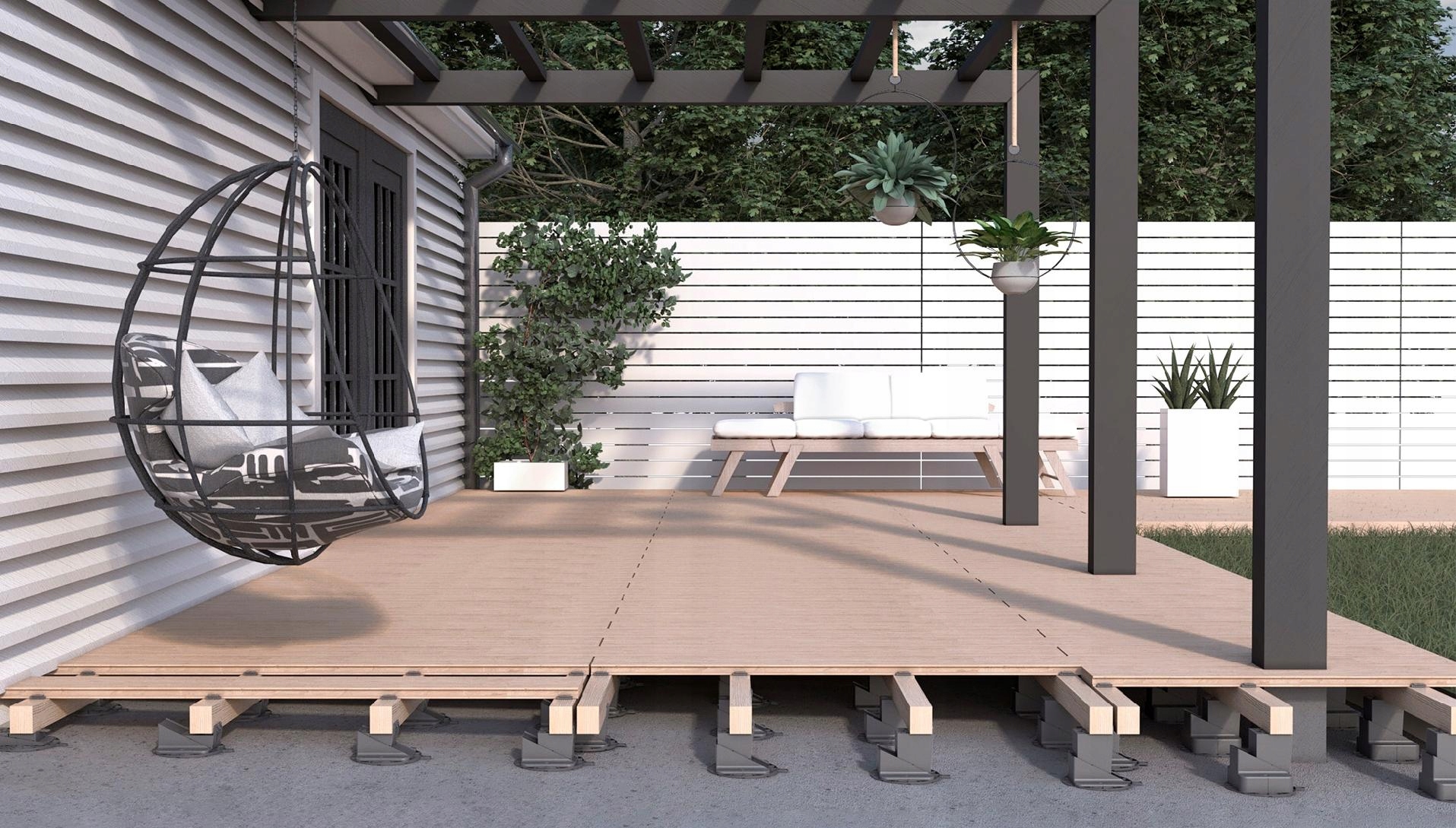 - Стійка основа – міцна основа для тераси або підлоги, яка витримує навантаження до 1000 кілограмів на одну опору