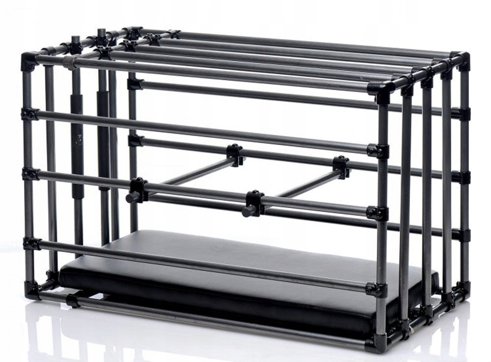 Поставте свою покірну половинку на коліна за допомогою Kennel Bondage від бренду Master Series. Ця деталь виготовлена з грубого металу та має м’яку пластину знизу. Стрижні спереду покриті м'яким силіконом. Ви можете помістити голову між цими брусками. Ремінці можна налаштувати, тож ви можете створити власну гру для рабів. Бондажна клітка Kennel ідеально підходить для любителів цуценят. Помістіть свій підводний човен у клітку, і він ніколи більше не стане непокірним!
