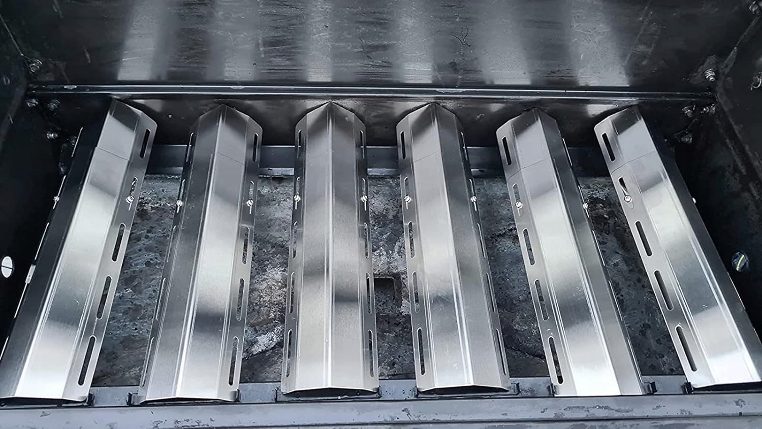 Діаметр конфорок становить 2,54 см, а довжина регулюється від 31 до 44 см. Кришки конфорок (нагрівальні плити) мають довжину від 30 до 72 см і ширину 9,5 см. Регульована конструкція дозволяє точно підлаштувати гриль під конкретну модель. Перед покупкою рекомендується перевірити розміри ваших елементів.
