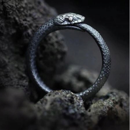 Регульована металева каблучка з печаткою Dark Snake 2 Punk Biker