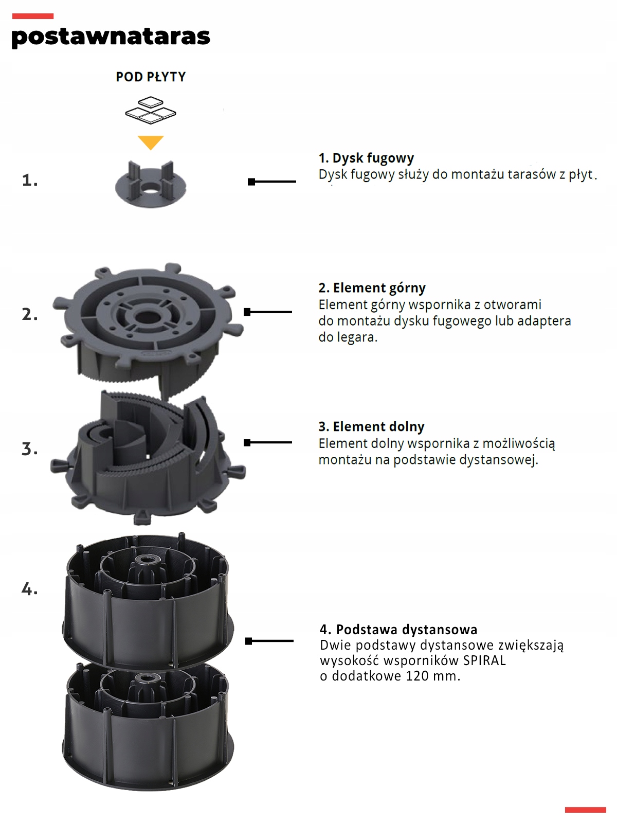 - Опори терас призначені для використання в місцях, які піддаються прямим зовнішнім погодним умовам. Використовувати на стійких і рівних поверхнях