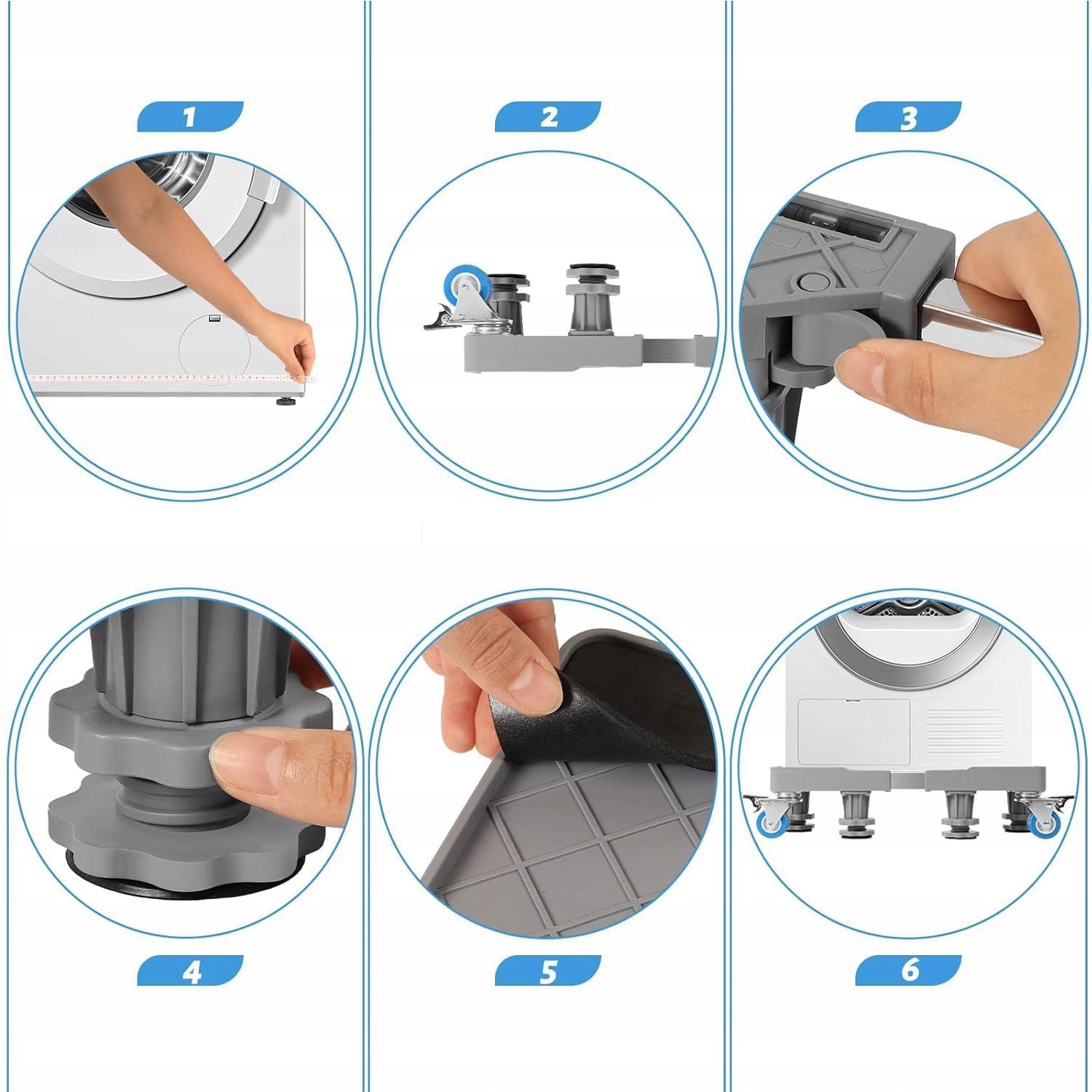 🌟🌟Просте встановлення:блокування кнопок дозволяє встановлювати одну людину. Його легко зібрати. Наша підставка для пральної машини має 8 міцних підйомних ніжок і 4 гумові фіксуючі колеса. Стійкий і легкий у переміщенні завдяки поворотним колесам, що полегшує чищення та модифікації.