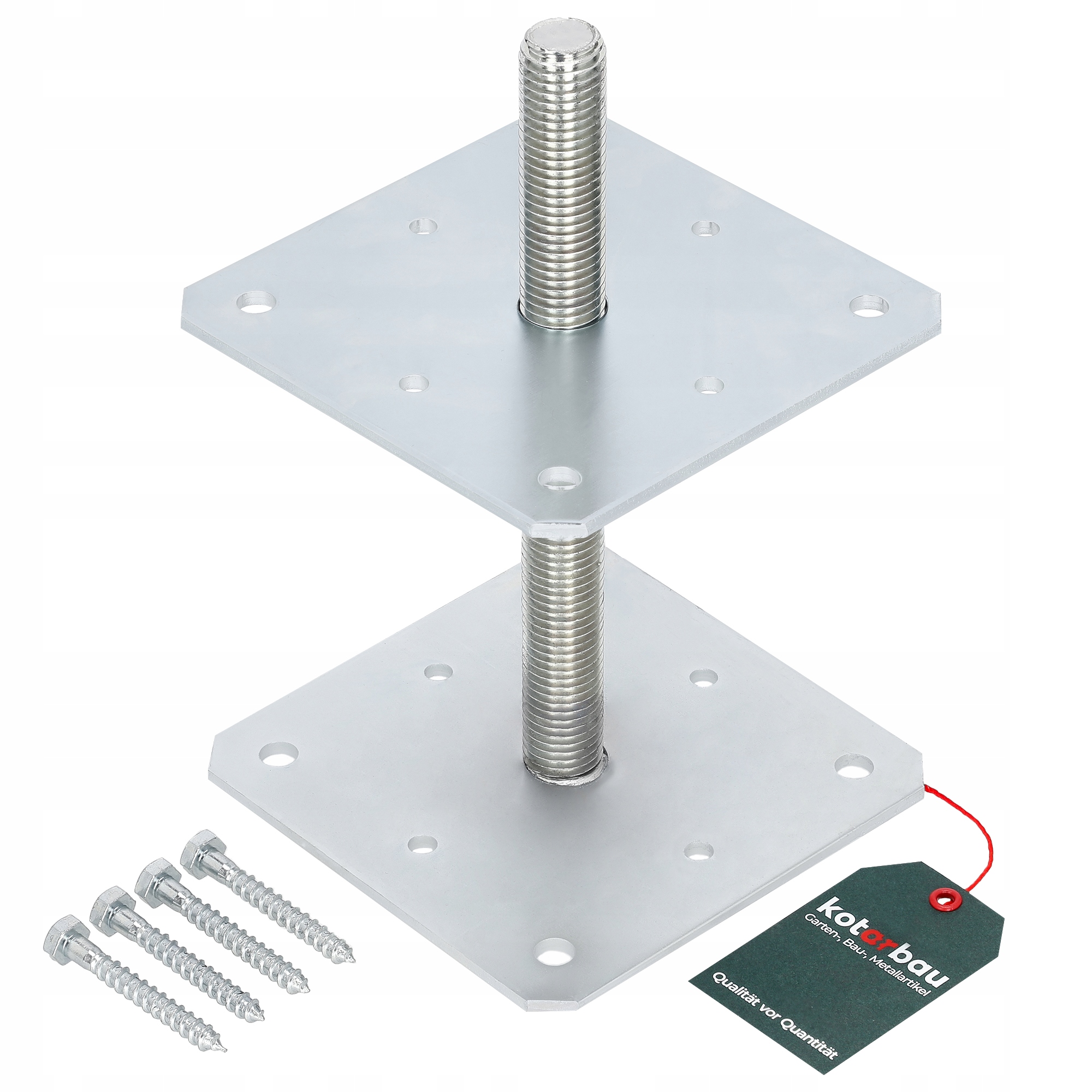 Гвинтова регульована основа опори полегшує установку дерев'яних елементів на бетон. Регулювання дозволяє встановити висоту монтованого елемента до 250 мм. Завдяки цьому рішенню відстань стовпа від землі можна регулювати після встановлення.
