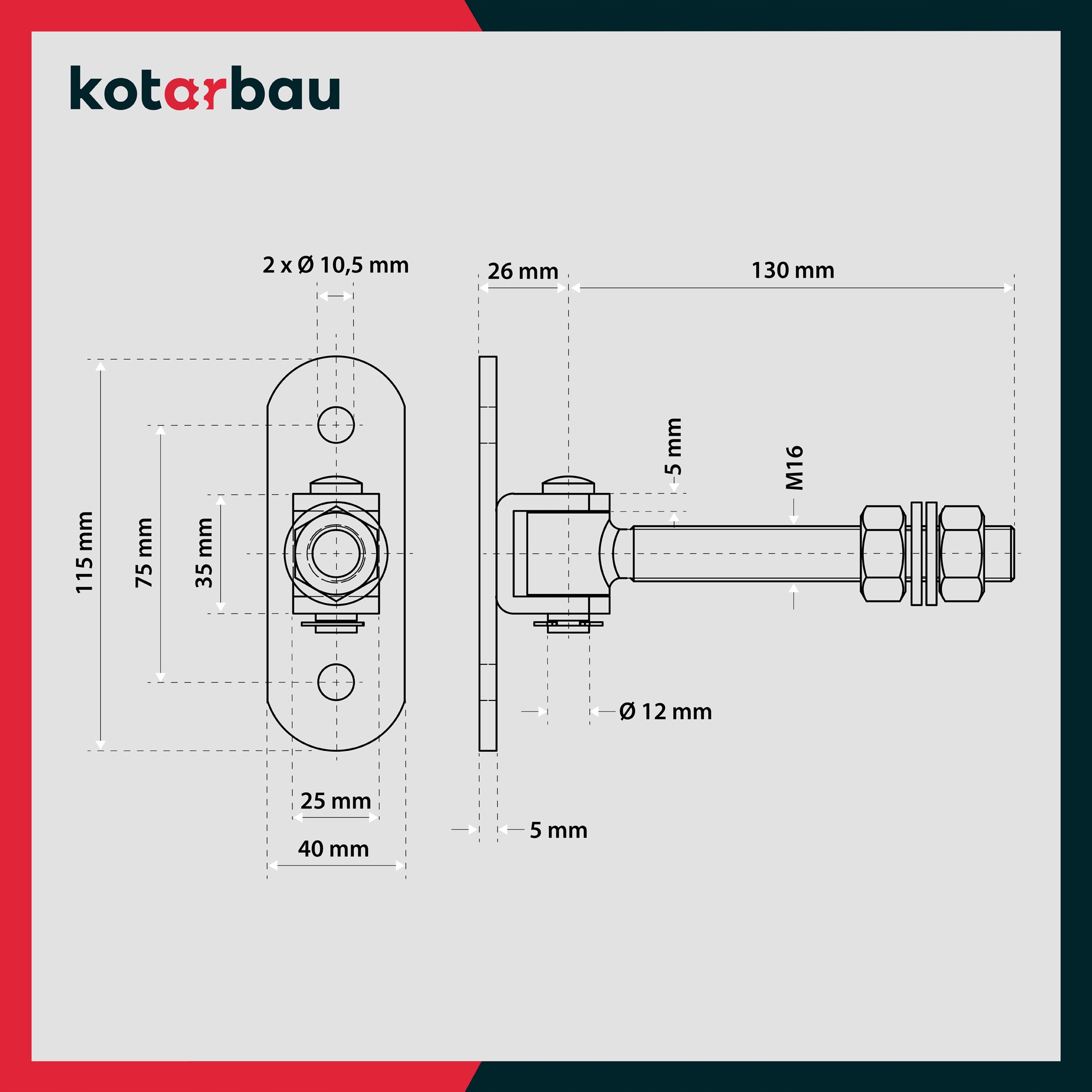 Петля регульована з різьбою М16 призначена для встановлення розпашних воріт та хвірток. Має пластину з двома отворами для загвинчування та регулювання. Це дозволяє оптимально відрегулювати конструкцію після складання.