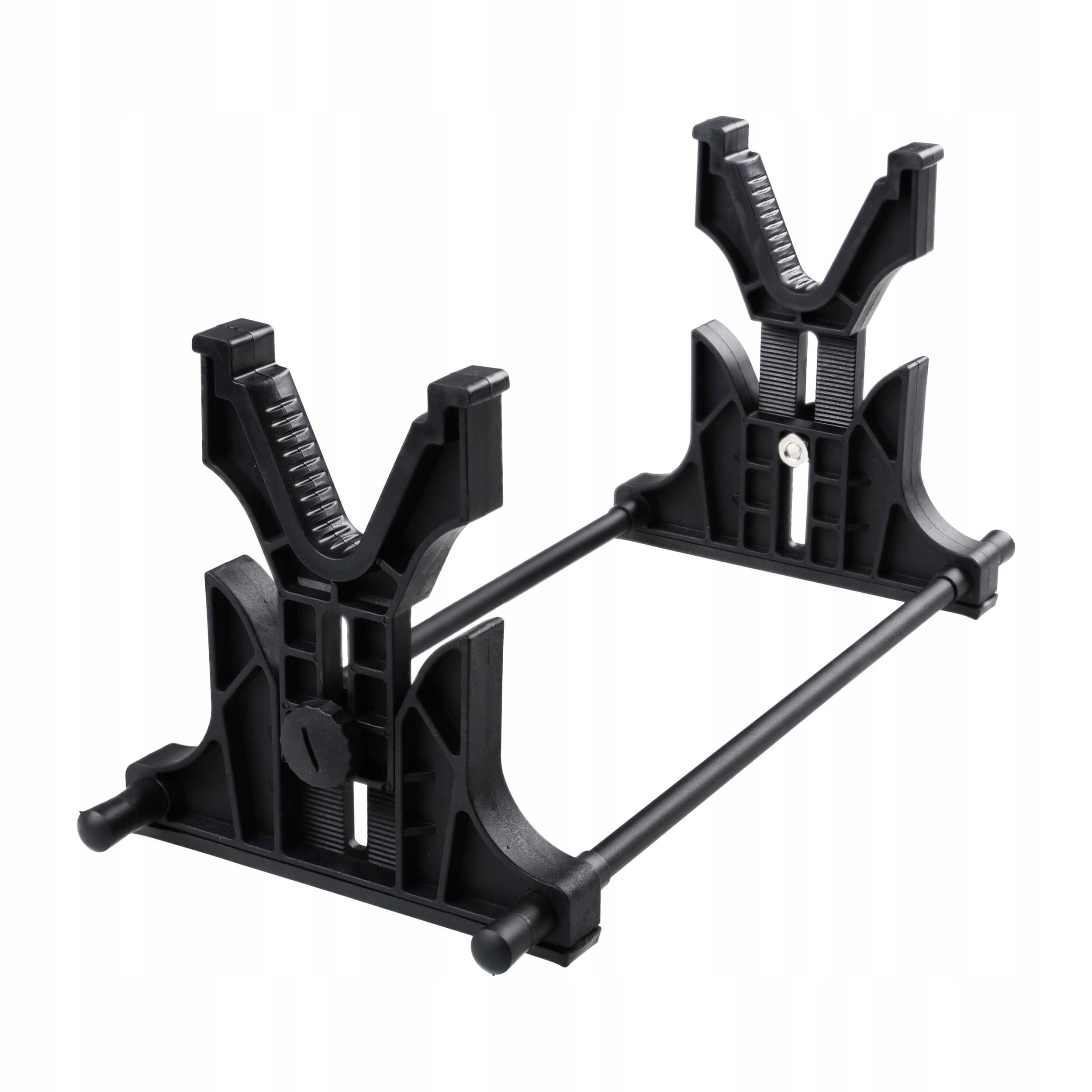Стійка виготовлена з пластику, має механізм вертикального регулювання - всього кілька обертів ручки і кронштейни, що підтримують зброю, піднімуться або опустяться. Діапазон зросту від 21 до 25,5 см. Це дозволить демонструвати обладнання або забезпечить легкий доступ до його окремих частин. Це зручно, особливо під час чищення чи планового обслуговування.