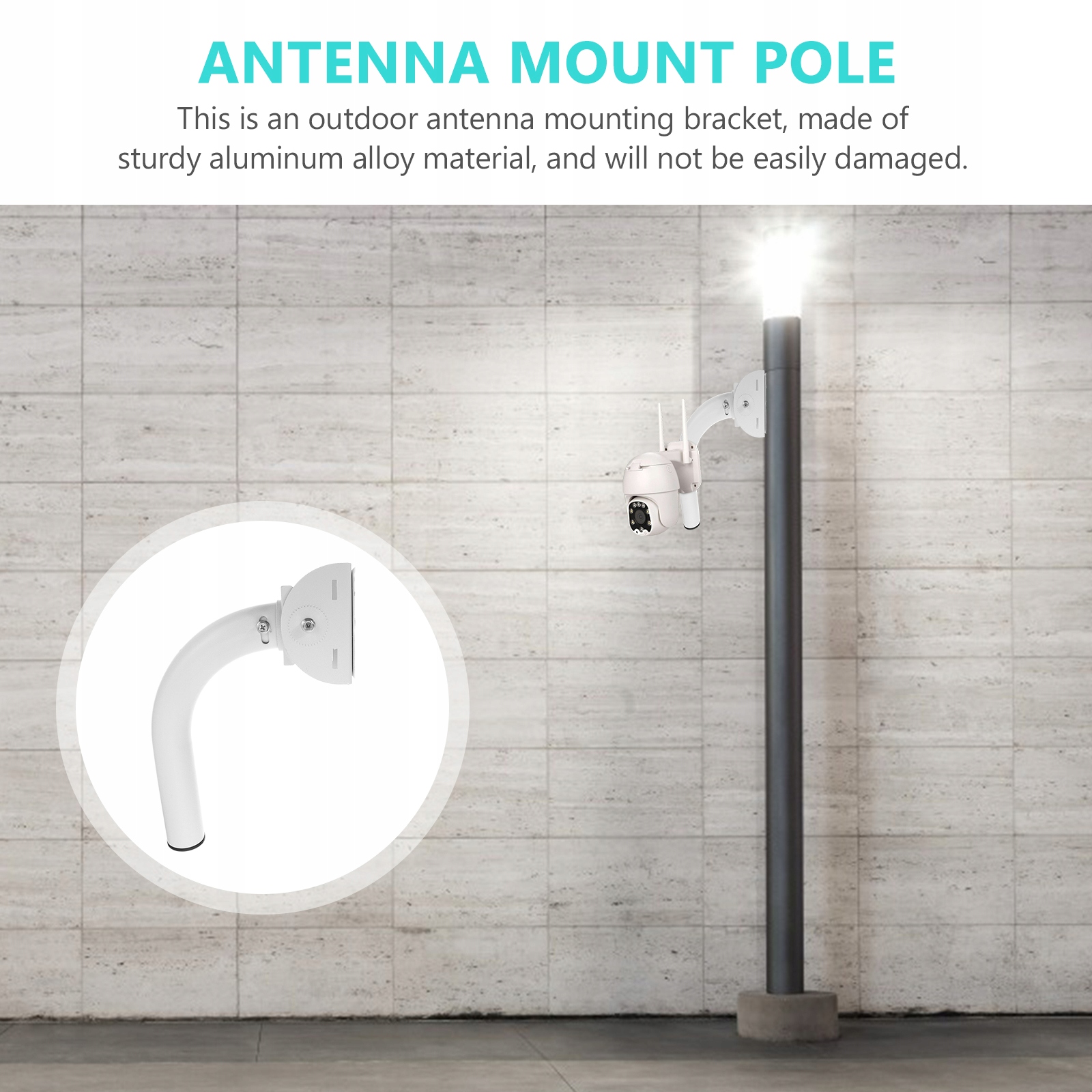 Це кронштейн для кріплення зовнішньої антени, виготовлений із міцного алюмінієвого сплаву, який легко пошкодити. Цей кронштейн антени має регульовану конструкцію, ви можете налаштувати її відповідно до ваших потреб. Розумна конструкція дозволяє легко встановлювати та не відпадає, що дуже практично.