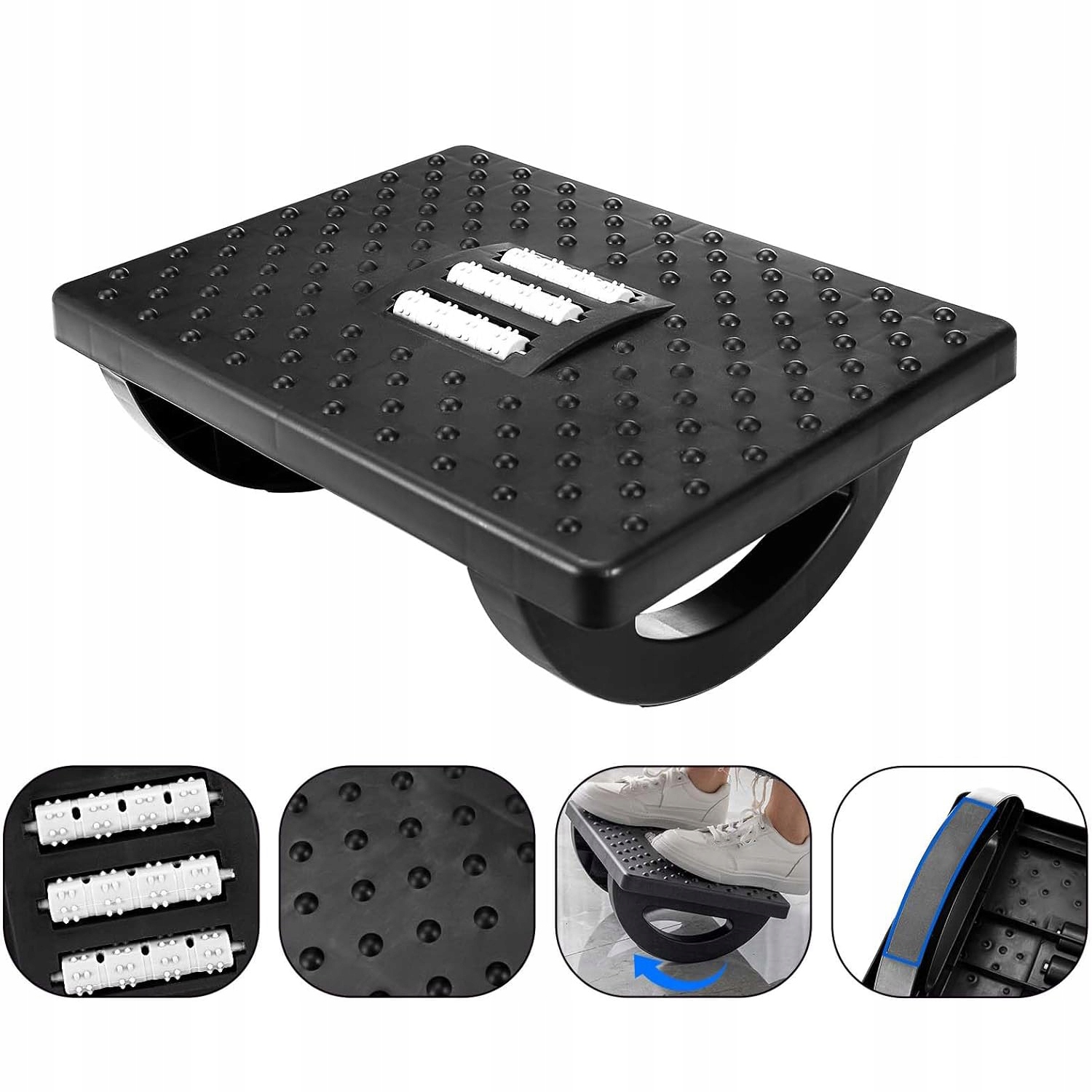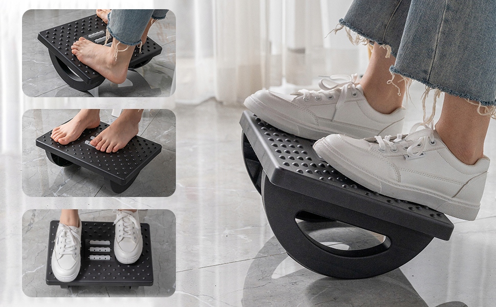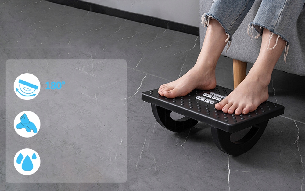 - ✅Масажна поверхня та ролик: Текстуровані поверхні з масажними точками та роликами, які можуть масажувати ноги та знімати напругу від ходьби та взуття, роблять його комфортним у носінні. Ця підставка для ніг під столом розроблена з чотирма міцними нековзкими ніжками, тож вона не ковзатиме по вашій дерев’яній підлозі