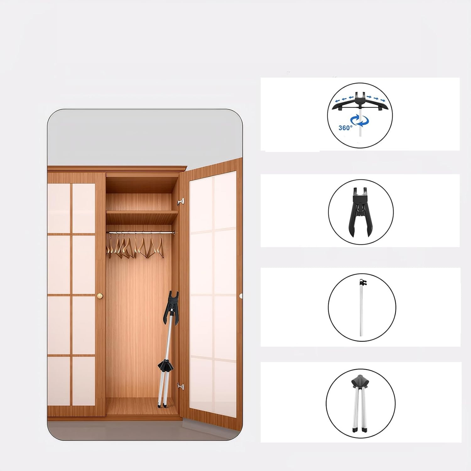 ✅️Регульований тримач для пароварки з поворотом на 360°: тримач для пароварки має довжину до 160 см і оснащений 3 регульованими штангами. Тримач відпарювача обертається на 360 градусів, полегшуючи завантаження та вивантаження одягу, забезпечуючи рівномірне прасування з обох сторін. Ідеально підходить для щоденного використання та особливих випадків.