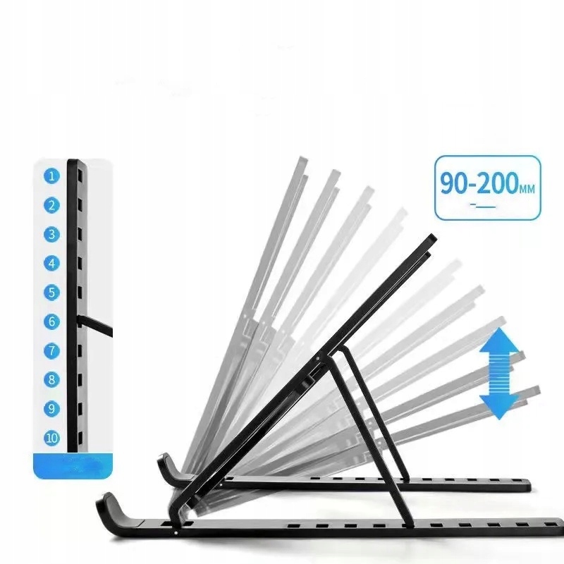 6 рівнів регулювання висота адаптується до різних потреб, а функція складання полегшує зберігання. Критичні точки, покриті гумою, додатково захищають ноутбук від ковзання.