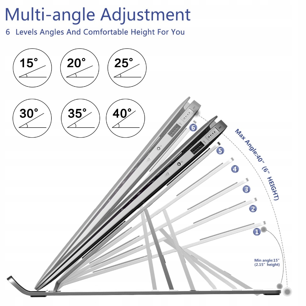 - Регулювання кронштейна, відстань від 4,5 см до 16,5 см: Гнучкість регулювання кронштейна дозволяє регулювати підставку до різних розмірів ноутбуки/планшети, що забезпечує стійке утримання та захист пристрою.