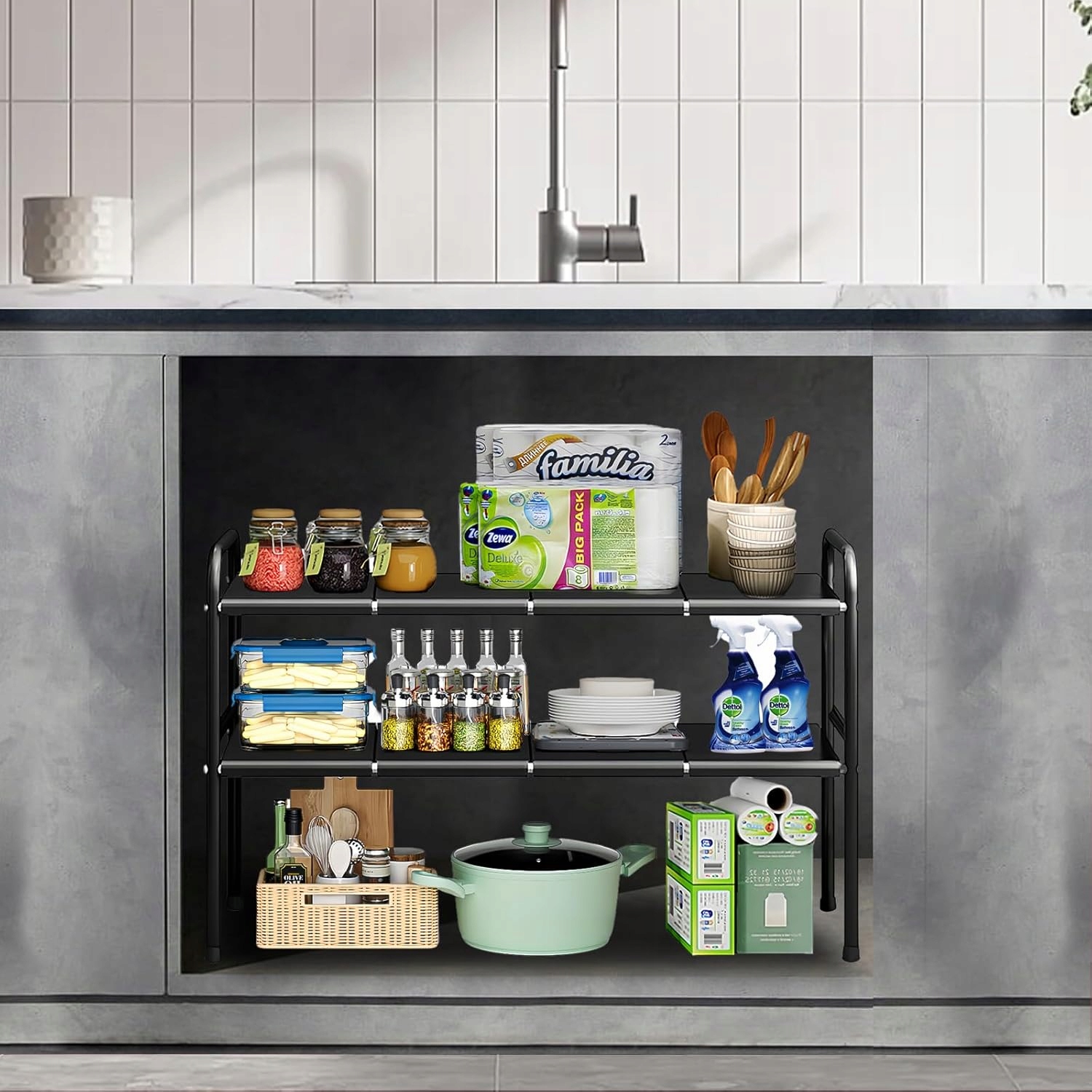 розширювана полиця під раковиною, дворівнева кухонна кухня організатора ванної кімнати під раковиною, взуття для взуття з 8 знімними панелями, регульована довжина/висота, чорний