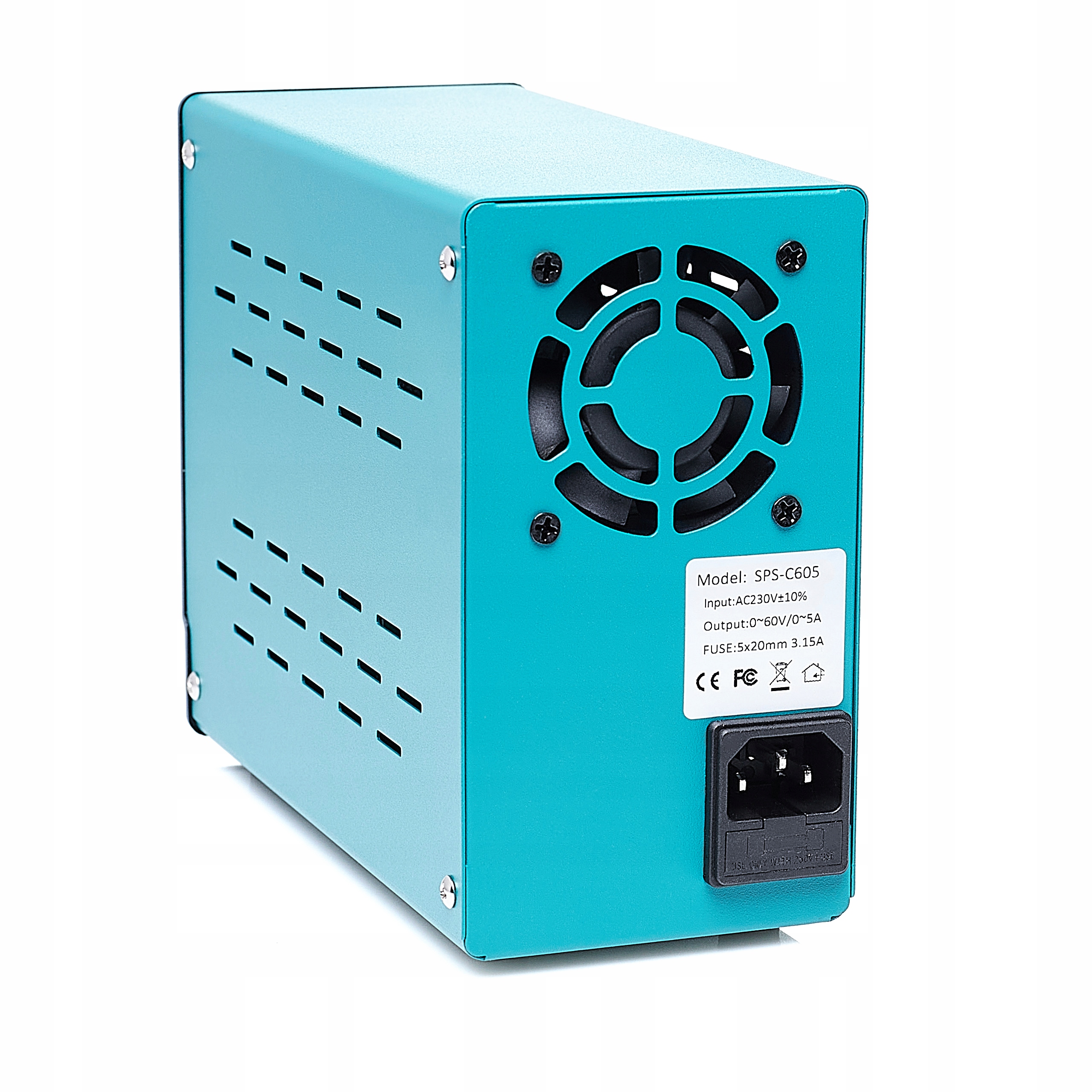 У джерелі живлення SPS-C605 тепловий розряд проводиться за допомогою вбудованого вентилятора, який вмикається при нагріванні. Блок живлення адаптується до безперервної роботи. Його результати можуть бути підключені послідовно, паралельно або симетрично з другим джерелом живлення з подібною конструкцією. Максимальна потужність виходу - 300 Вт (60 В х 5а). Блок живлення має компактні розміри і розміщується в металевому корпусі з пластиковими ніжками, які стабілізують його та виділяють від інших потенціалів.