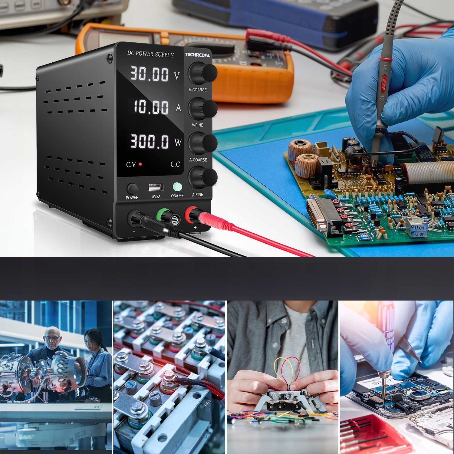 TechRebal SPS-C605 -стабілізований лабораторний джерело живлення з плавним регулюванням напруги в діапазоні від 0 до 60 В і струм від 0 до 5 А. Основними його перевагами є висока точність та чіткий РК-дисплей. Блок живлення охолоджується тихою температурою, що регулюється вентилятором.