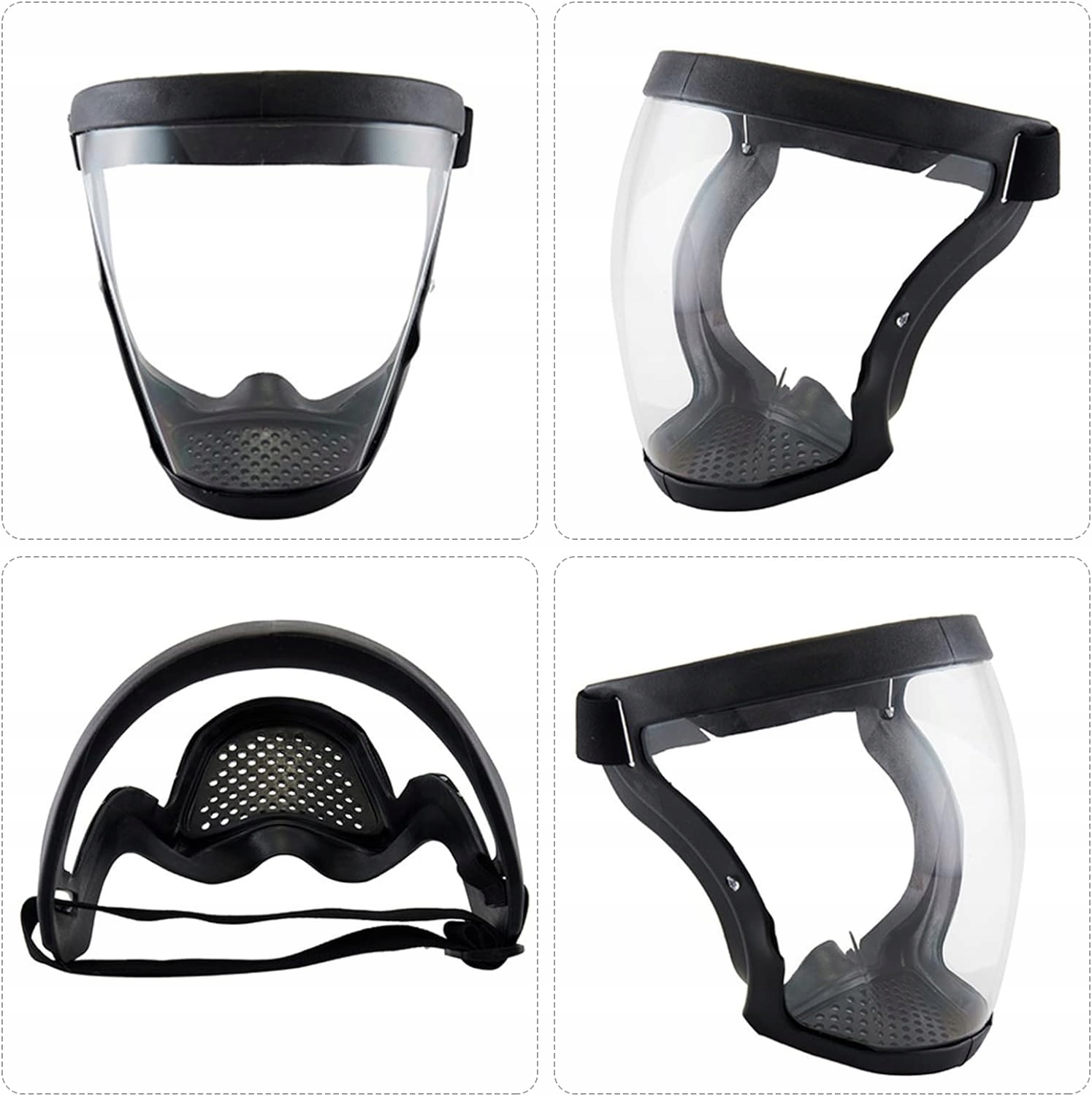 - Основний корпус маски для повного обличчя має прозору HD-панель, яка не випаровується. і ідеально покриває все обличчя, а також дозволяє носити окуляри. Чудовий захист, наприклад, під час фарбування стін, свердління отворів у дереві, різання дисками при високих температурах для захисту обличчя та очей.