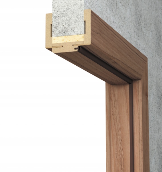 Регульована дверна коробка з кутником T80 оснащена кутниками з малими радіусами закруглення поперечного профілю. Виготовляється з високоякісної деревної плити. Сторона дисплея покрита УФ-акриловим лаком Ral 9003.