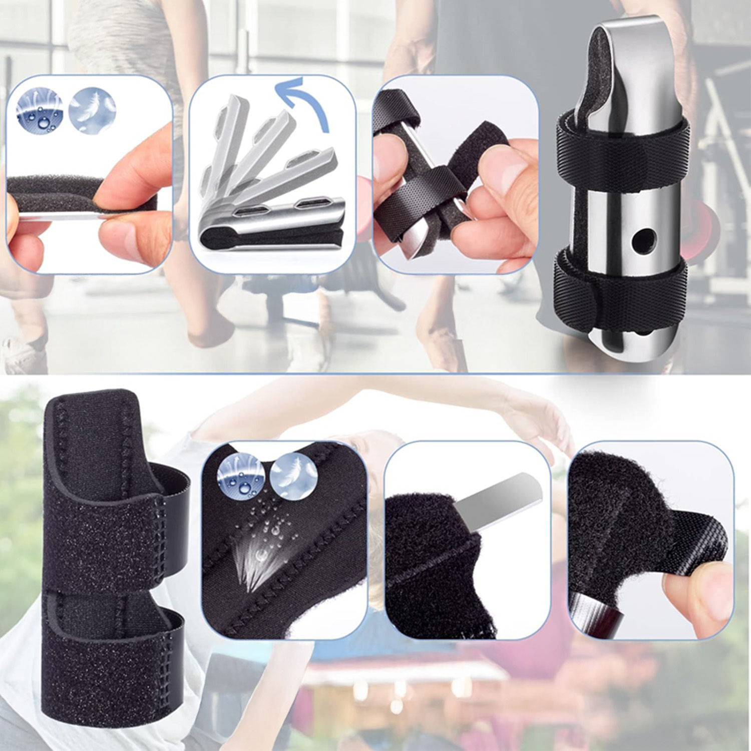 Брекети для пальців використовують алюмінієву пластину, щоб пальці завжди були прямими. Частини, що контактують з носками, виготовлені з супердихаючої губки або бавовняної тканини, яка є дуже м’якою, дихаючою та зручною для носіння. Легко чиститься та швидко висихає.